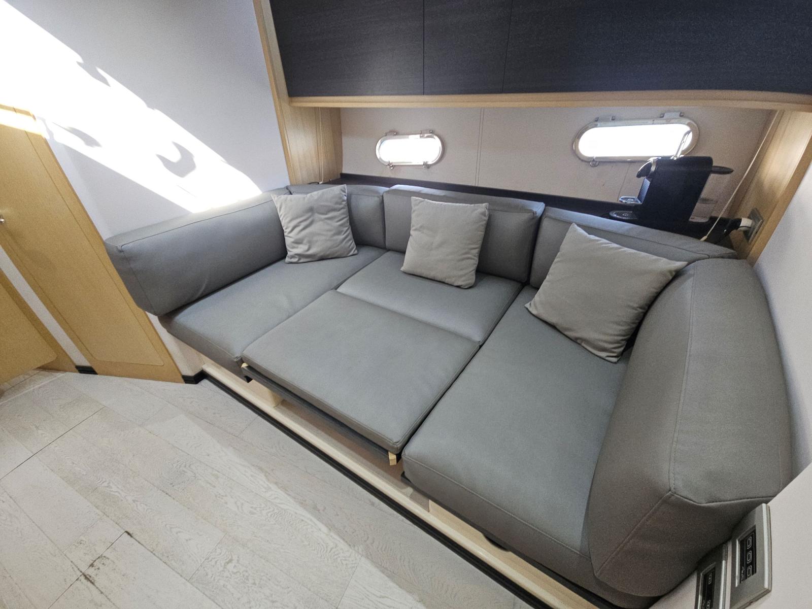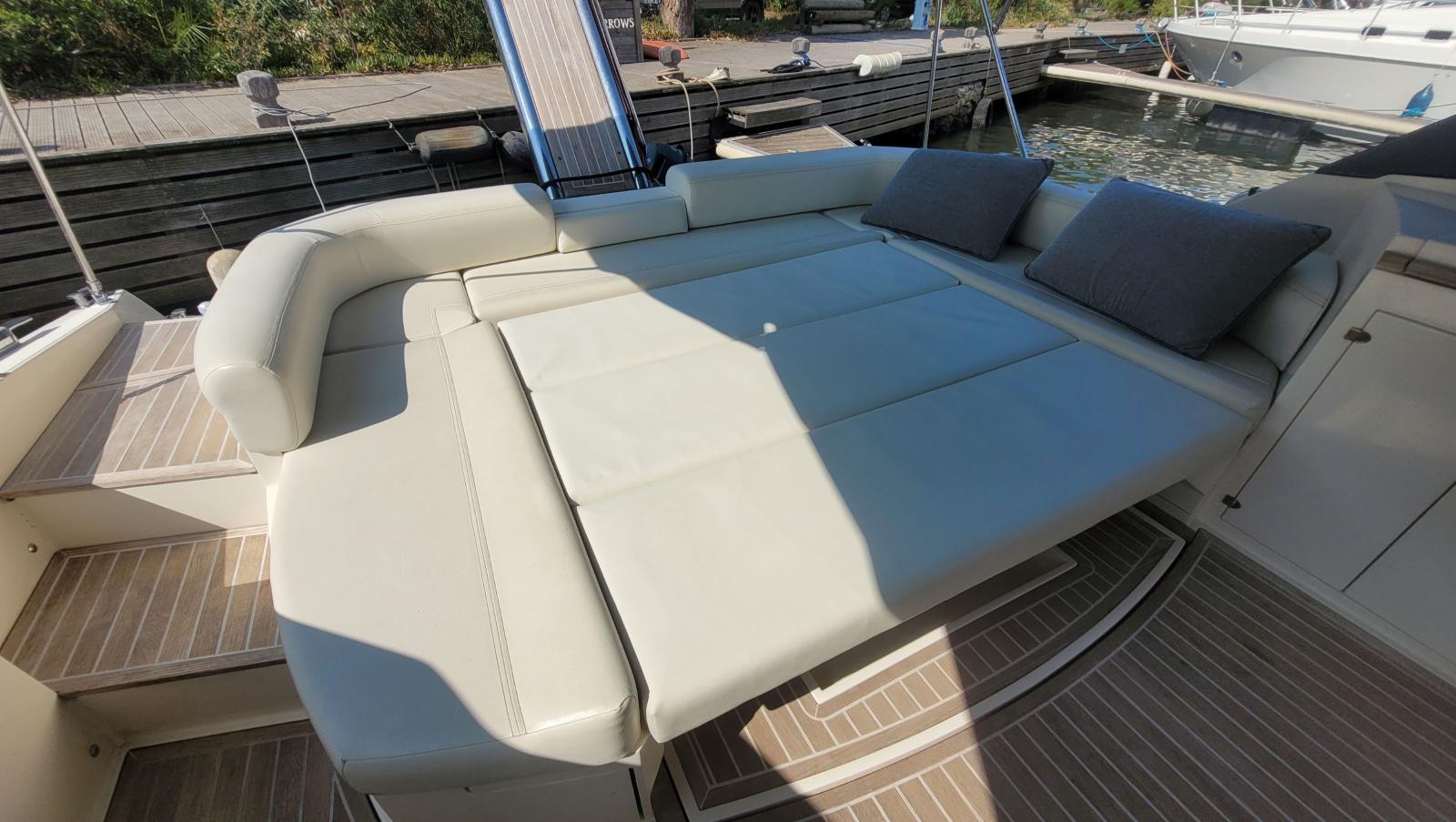 Facile à manœuvrer avec son système IPS, il bénéficie d’un entretien rigoureux et régulier. Les espaces extérieurs sont généreux, avec un grand cockpit convivial, un bain de soleil avant et une plateforme arrière accueillante.