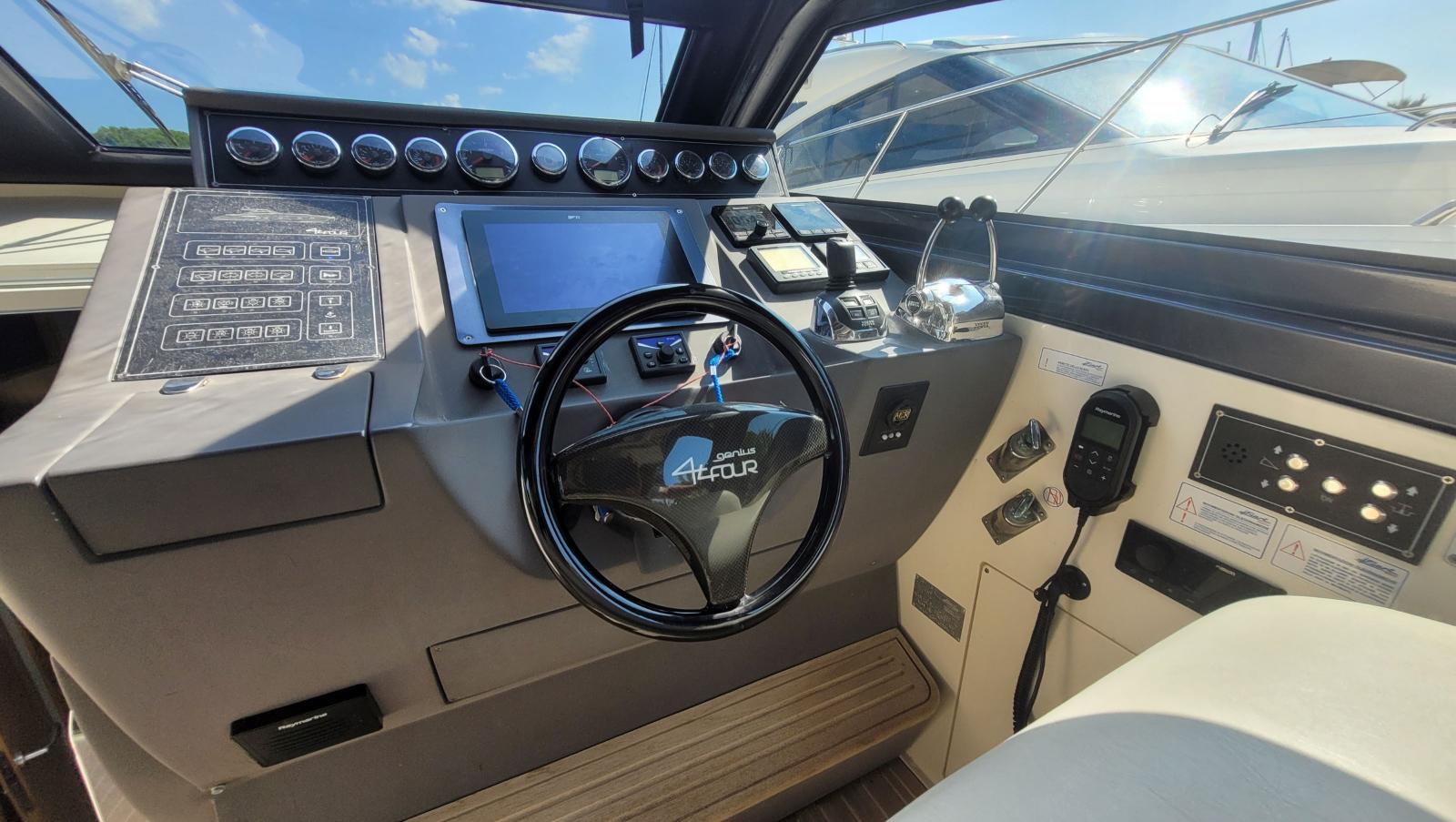Ce Fiart 44 4TFOURS GENIUS, offre 3 cabines doubles , 2 salle d'eau complète , une cuisine intérieur et une cuisine extérieur. Un immense cockpit avec grande table en teck rétractable s'encastrant dans le planché.