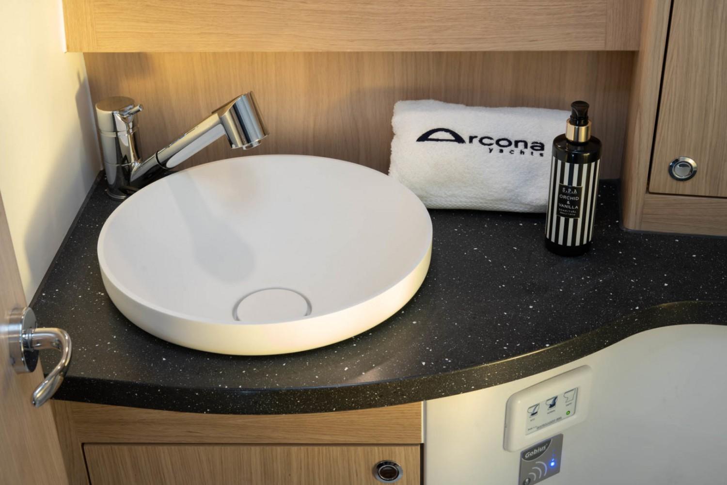 L'Arcona 435 incarne les caractéristiques d'un croiseur familial rapide très confortable et d'un yacht de course, sans faire de compromis. Elle est sûre et stable avec les cloisons étanches stratifiées et la poutre en acier galvanisée d'Arcona. C'est un plaisir de naviguer car il réagit rapidement aux réglages et ne pèse pas plus de 8990 kg. L'Arcona 435 peut également être spécifié avec une coque, un pont et des longerons en carbone, ce qui réduit encore son poids. Arcona 435 a une surface de voile légèrement plus grande que les modèles précédents pour optimiser les performances au près.