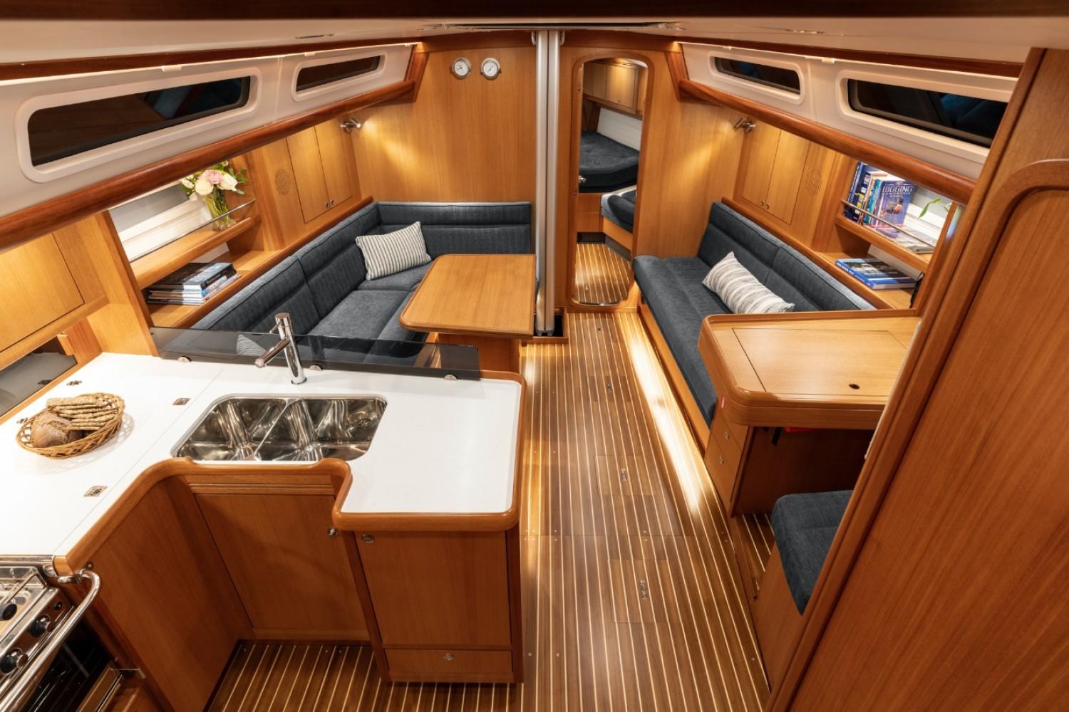 Stefan Qviberg, le designer, a conçu un chef-d'œuvre qui plaît aux propriétaires qui veulent à la fois du confort pour les longs passages et des performances de navigation pour la régate. Stefan a expliqué: «Le 435 a une conception de voile efficace, un faible poids et la stabilité caractéristique de chaque yacht Arcona. Le 435 est moderne à l'intérieur comme à l'extérieur.