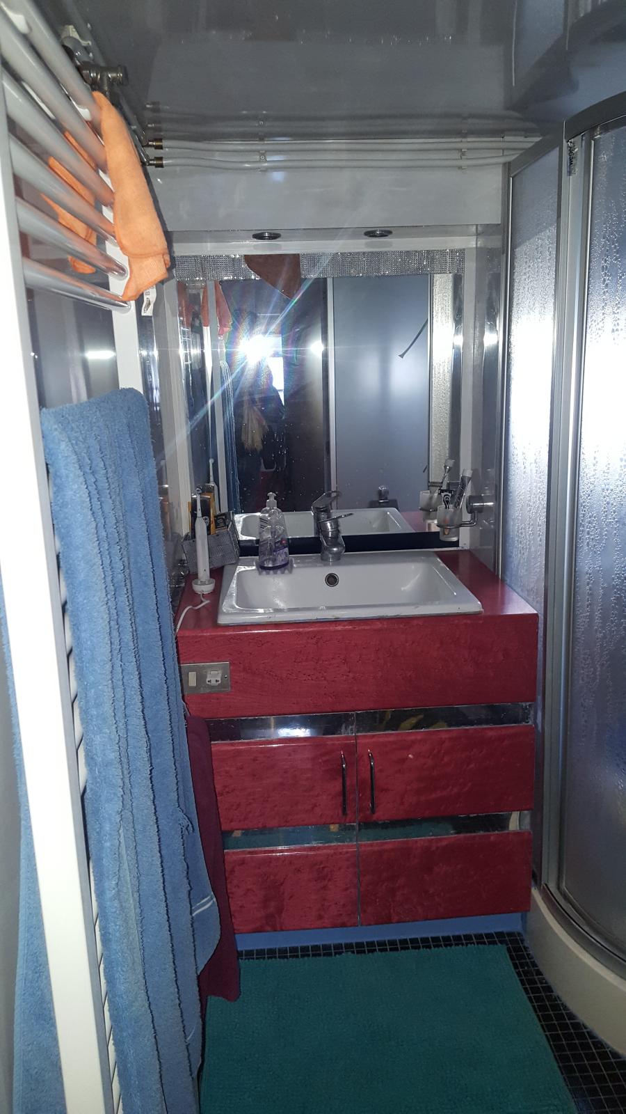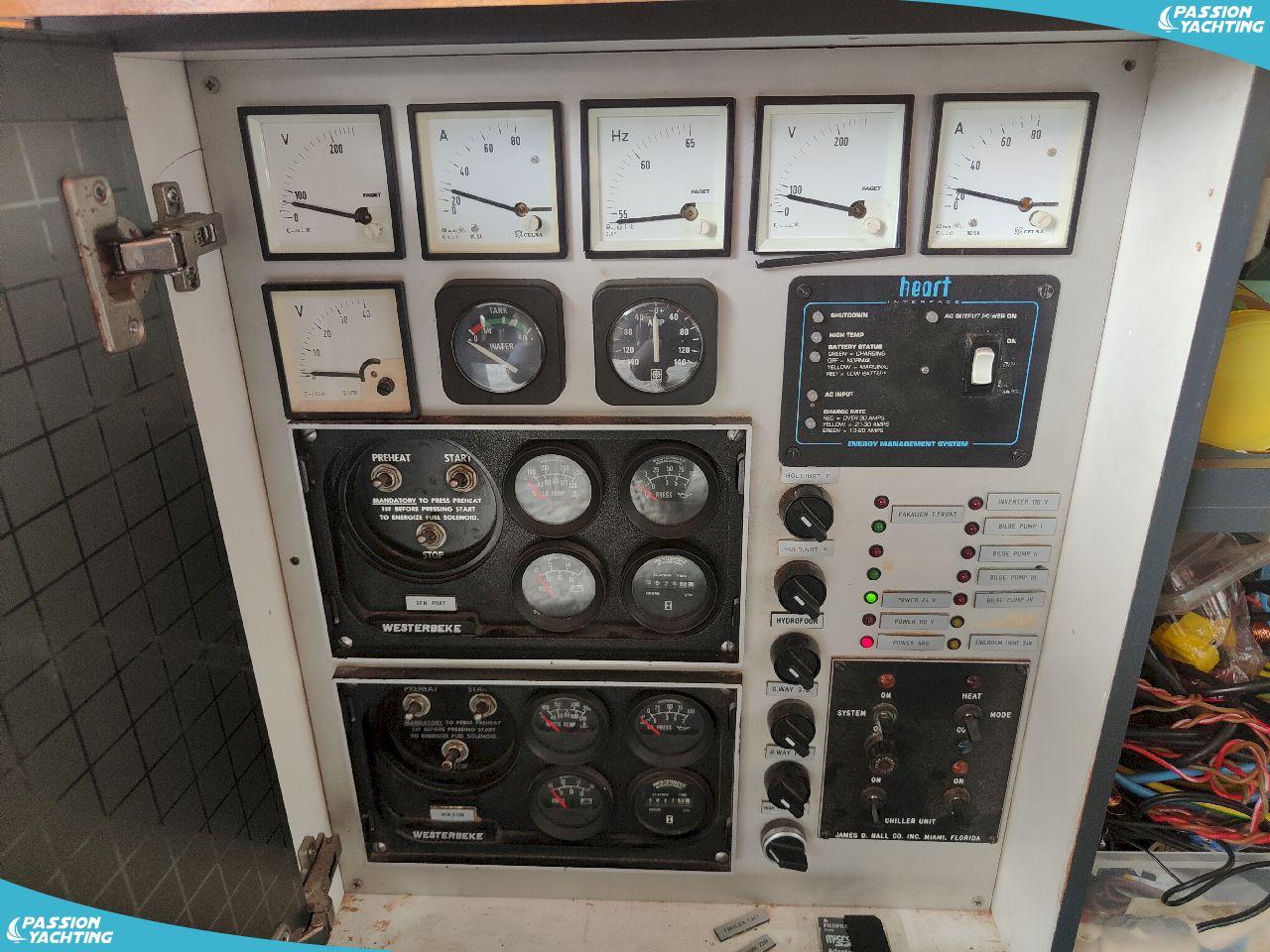 - Intérieur: Chargeur, Chauffe-eau, Contrôleur de charge, Convertisseur, Four, Générateur, Plaques électriques, Prise de quai, WC électriques