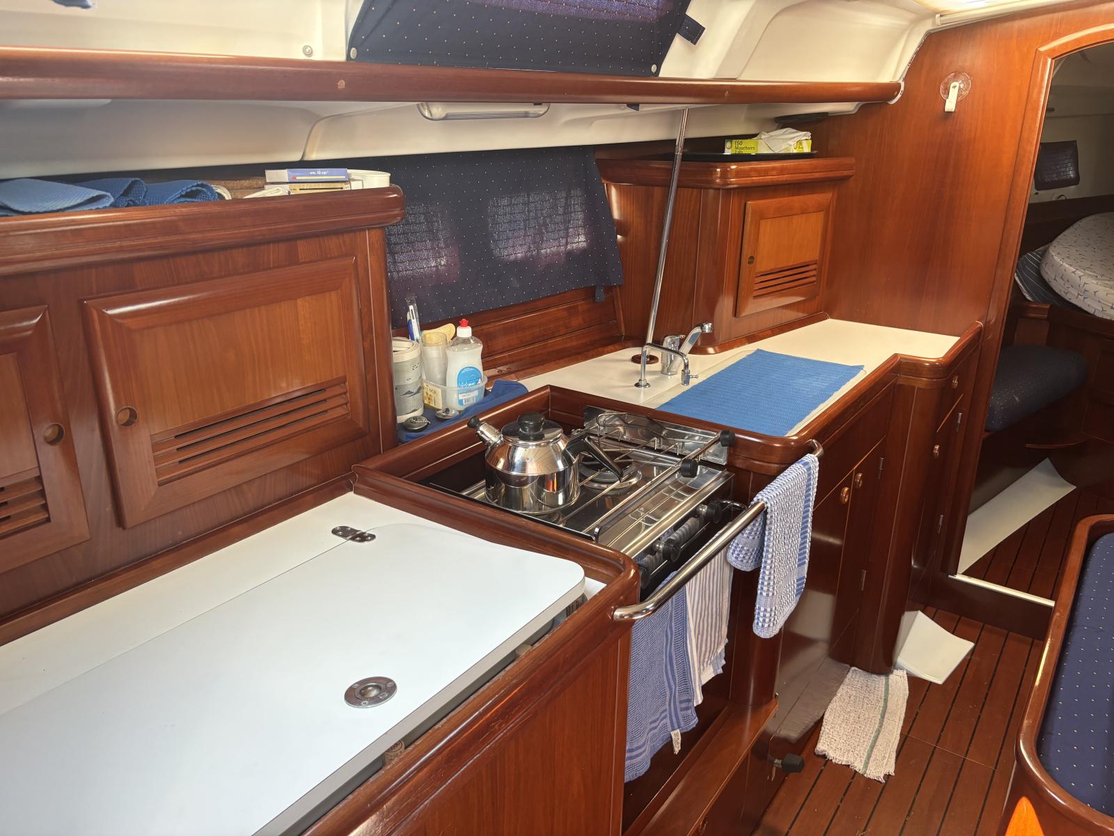 Équipé d'un moteur Volvo de 55 ch, ce bateau est à la fois performant et fiable. Il est doté d'une grand-voile lattée, d'un génois sur enrouleur, d'une trinquette et d'un spi asymétrique, permettant de naviguer dans toutes les conditions avec aisance. Son guindeau électrique facilite les manœuvres au mouillage.