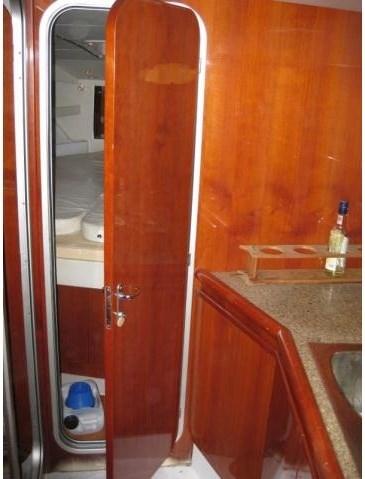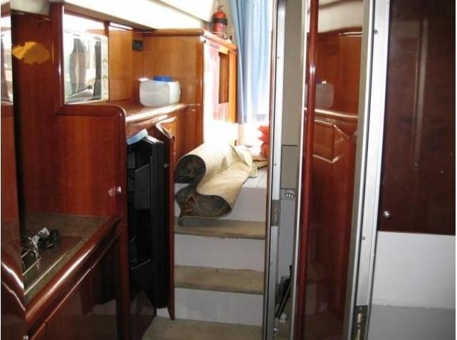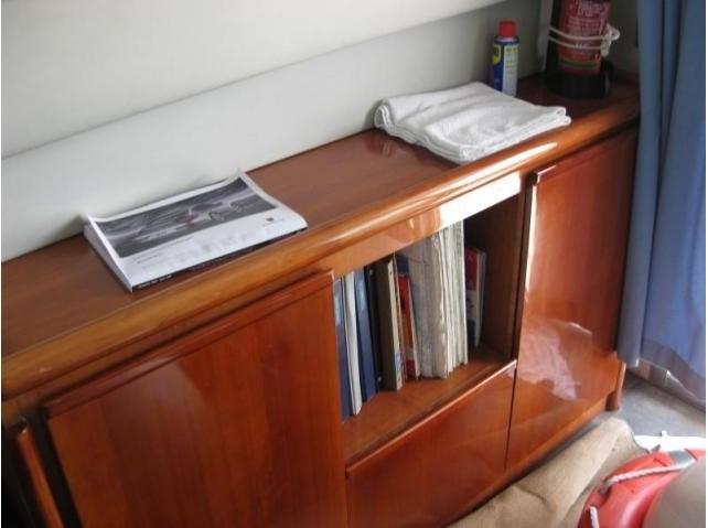 Alarme moteur, Eau sous pression, Douche de cockpit, Double barre à roue, Bossoirs, Passerelle, Plateforme arrière, Pompe de cale automatique, Onduleur, Guindeau électrique, Echelle de bain.