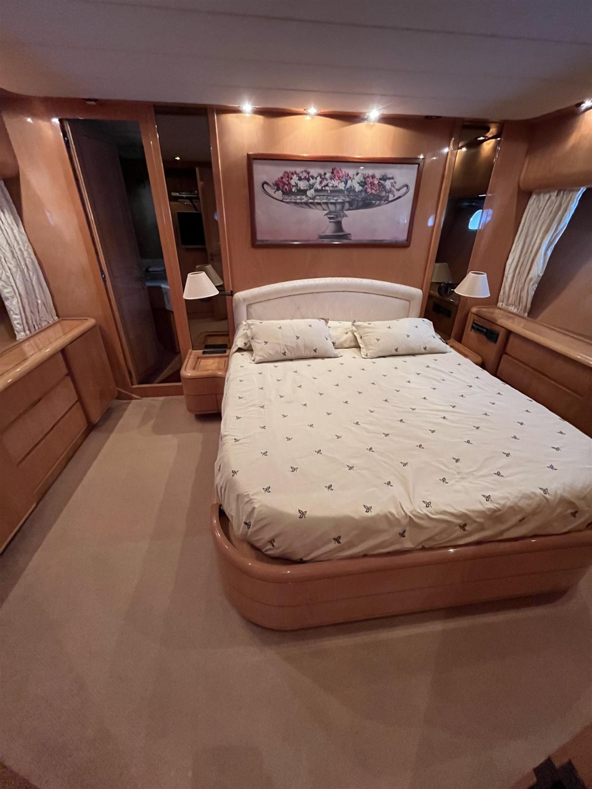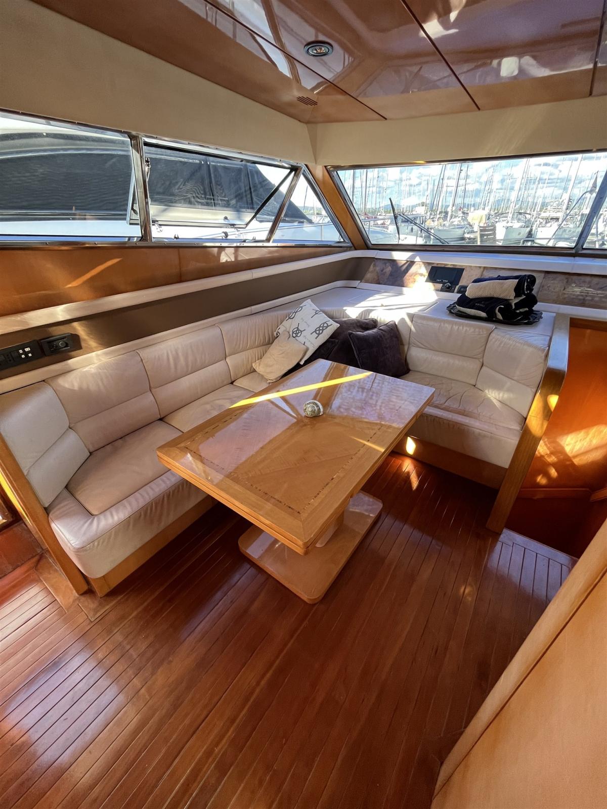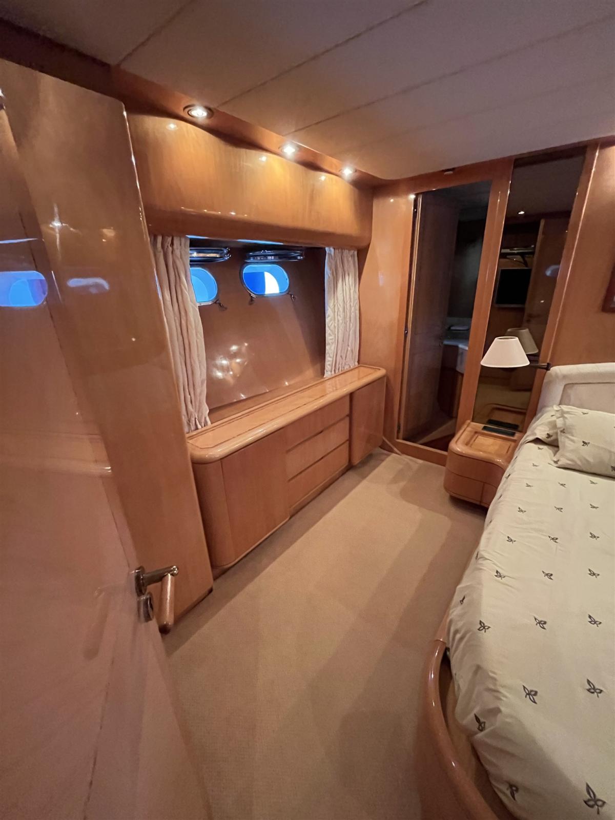 Alarme moteur, Alarme de pompe de cale, Eau sous pression, 24 Batteries, Douche de cockpit, Double barre à roue, Flaps hydrauliques, Extincteur(s) fixe(s) (in tutti gli ambienti), Lavage de chaine, Passerelle (Idraulica), Plateforme arrière, 4 Pompe de cale électrique (+ zona cabine), Pompe de cale manuelle, Cockpit en teck, Guindeau électrique, Echelle de bain, table de cockpit, Annexe (Eurovinil 270 Yamaha 4T 4HP), 2 Winch électrique arrière.