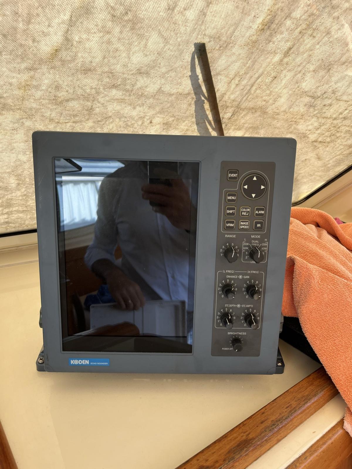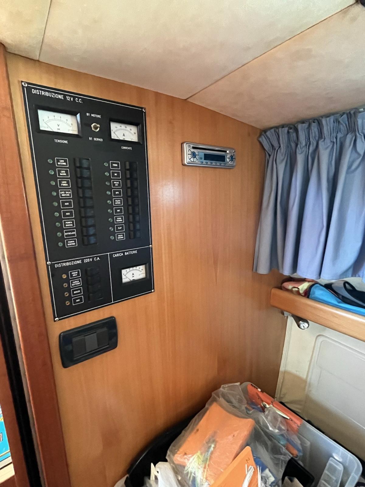 Indicateur d'angle de barre, Sondeur pêche (KODEN Prof.le con scarpetta 1KW), Pilote automatique (multifunzione), Plotter GPS (RAYMARINE 2021), Radio VHF (con antenna).