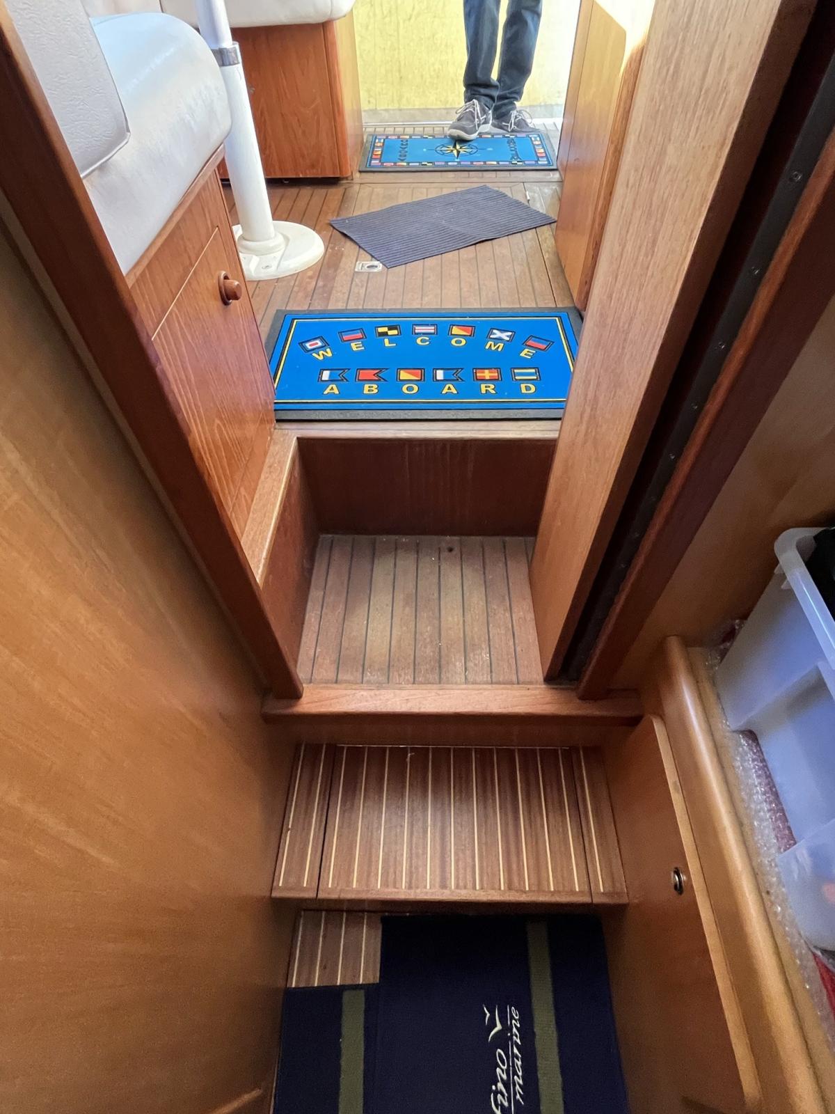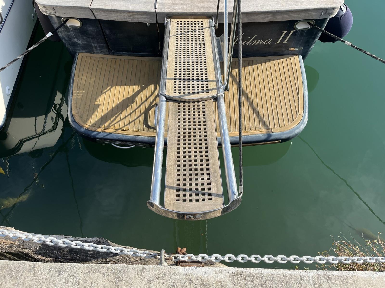 Alarme de pompe de cale, Douche de cockpit (calda e fredda), 2 Flaps électriques (con indicatori in plancia), Extincteur(s) fixe(s) (automatico sala macchina), Indicateurs de flaps, Éclairage de courtoisie, Passerelle (Idraulica telescopica e teak), Plateforme arrière (Teak), Pompe de cale automatique, Cockpit en teck, Prise de quai, Guindeau électrique (doppio comando ancora maggiorata), Echelle de bain (inox a scomparsa), table de cockpit (con pistone a gas trasformabile in letto).