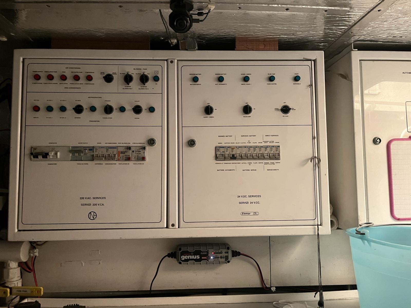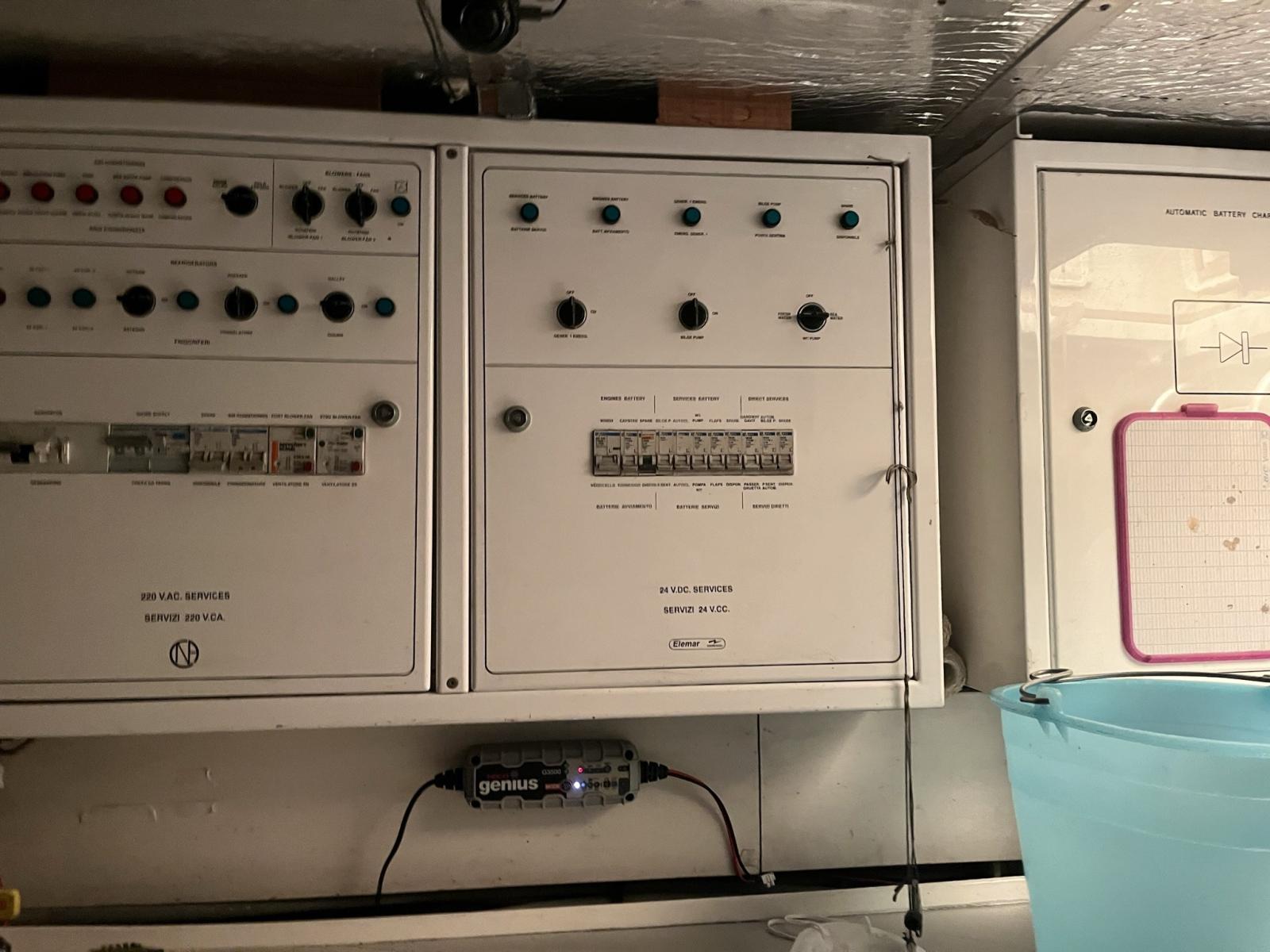 Air conditionné (calda e fredda anche nel pozzetto), Ballon d'eau chaude, Coffre-fort, Dessalinisateur (60 lt), Cuve à eaux noires, Prises interieures 12v, Prises interieures 220v, Réservoir d'eau noire, 2 Caméra vidéo (pozzetto e sala macchine), Interphone, 3 Toilettes électriques.