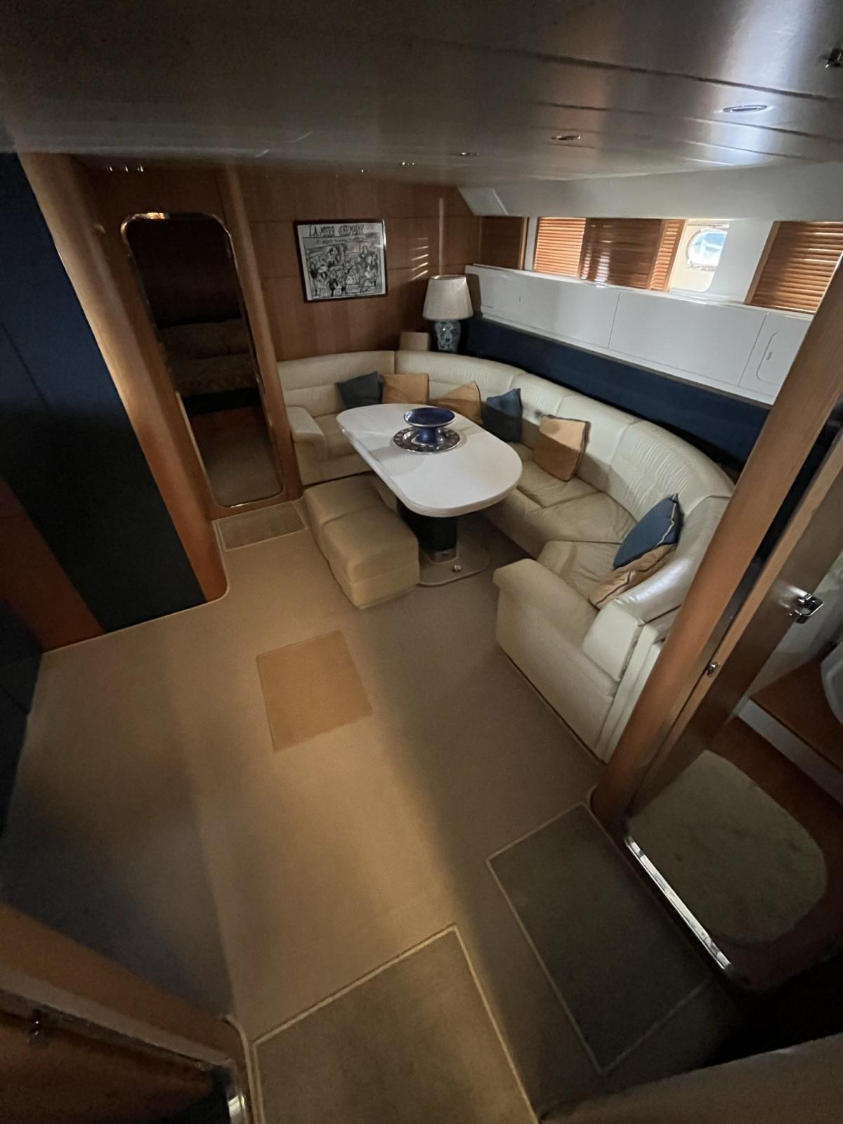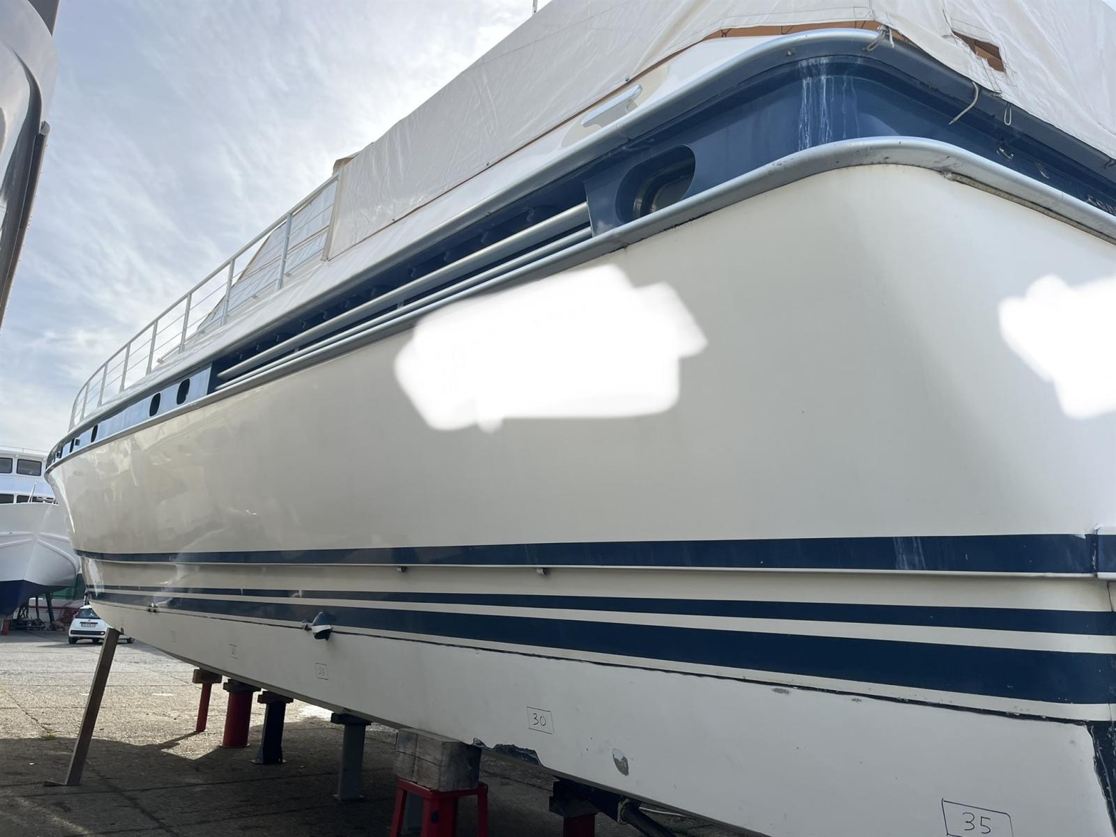 bateau a descendu du cockpit à droite cabine 2 lits avec salle de bain, à gauche cuisine fermée avec porte, au centre grand canapé à droite avec mobilier à l’avant, cabine double principale à l’avant avec salle de bain, à l’arrière avec entrée du cockpit cabine marin 2 lits superposés et toilettes ; bateau en excellent état ; moteurs révisés de 2018 avec remplacement des onduleurs et mis à neuf à partir de 2018 ont fait 230 heures de mouvement ; Annexe de 4,5 m avec Mercury15 CV ; 5 % de commission de courtage + 22 % de TVA à la charge de l’acheteur (la TVA est calculée uniquement sur le montant de la commission)