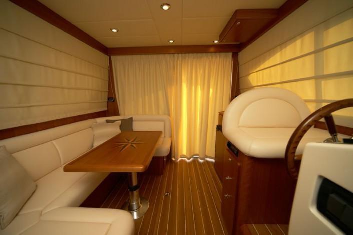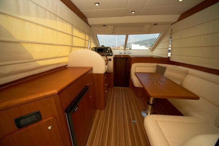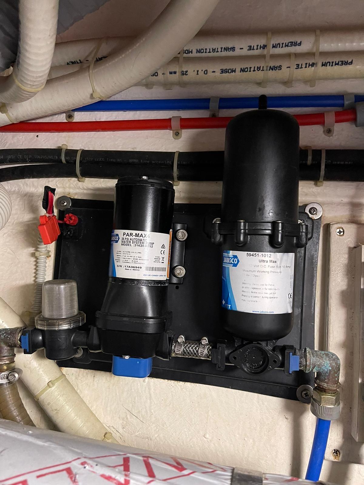 Alarme de pompe de cale, Eau sous pression, Douche de cockpit, Flaps hydrauliques, Spots sous-marins (Ocean led multicolore), Plateforme arrière, Pompe de cale automatique, Pompe de cale manuelle, Prise de quai, Guindeau électrique.