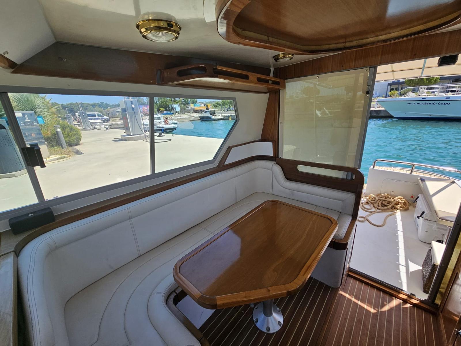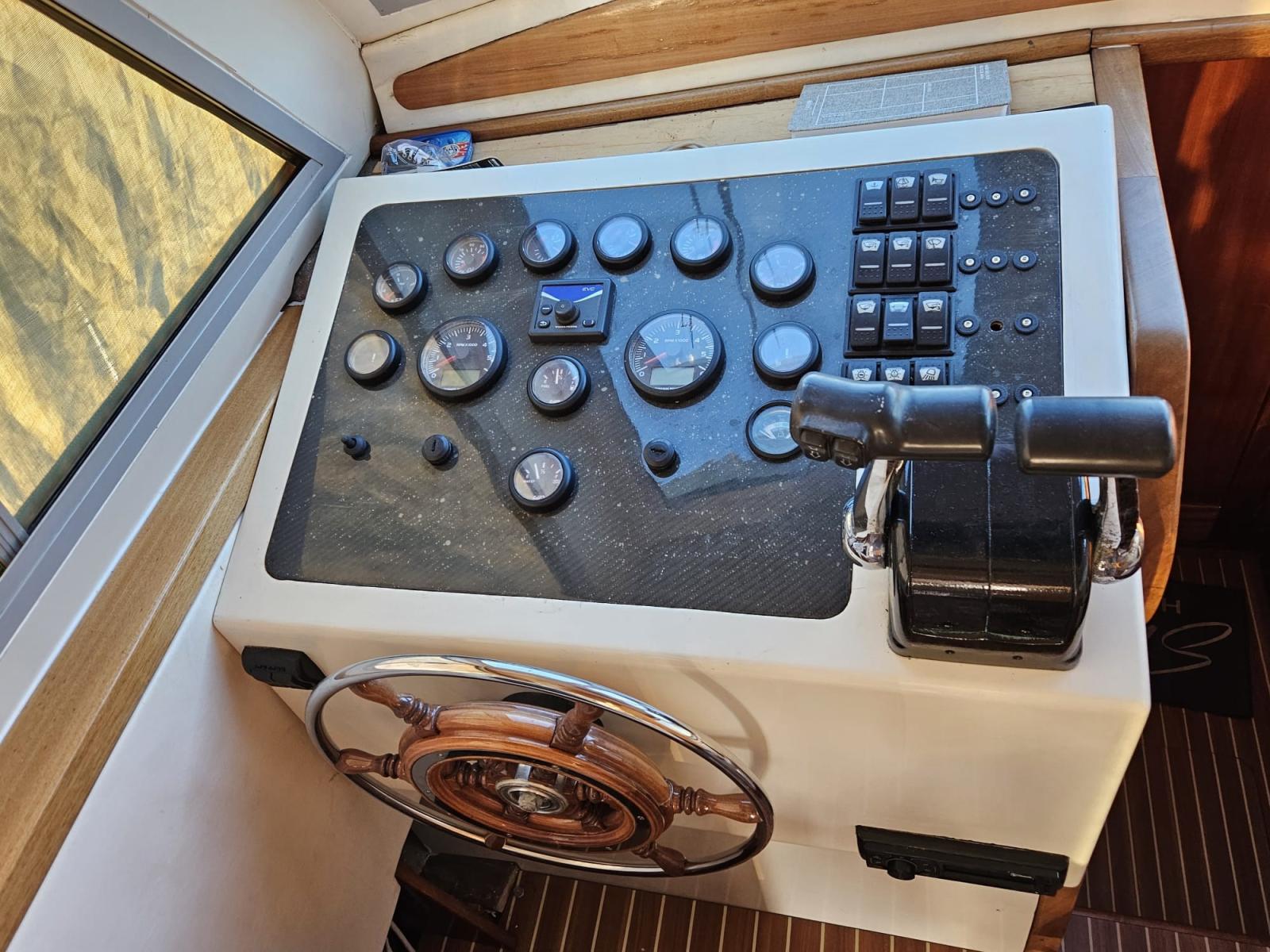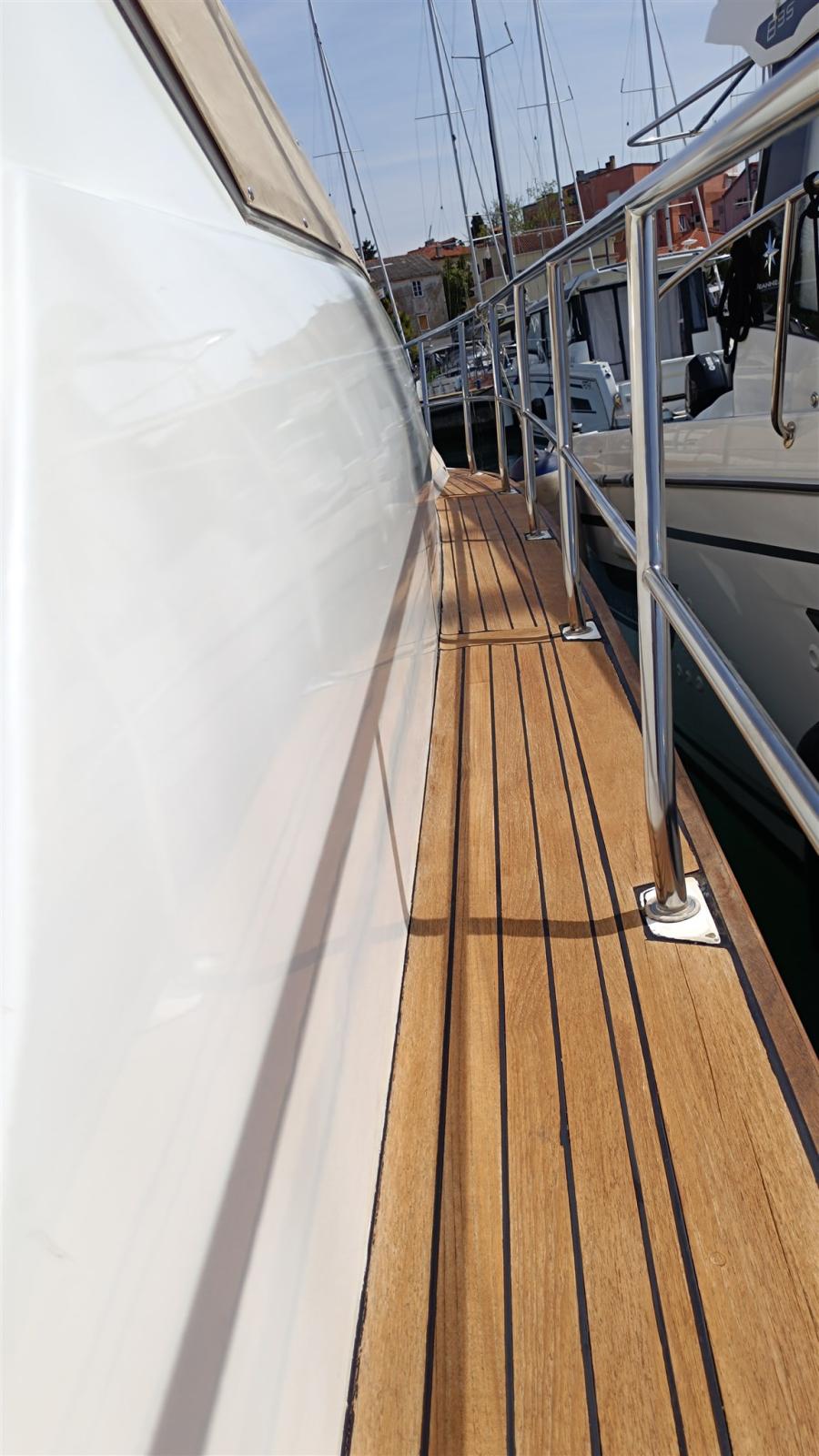 Alarme moteur, Eau sous pression, Douche de cockpit, Flaps hydrauliques, Plateforme arrière, Pompe de cale manuelle, Cockpit en teck, Guindeau électrique, Echelle de bain.
