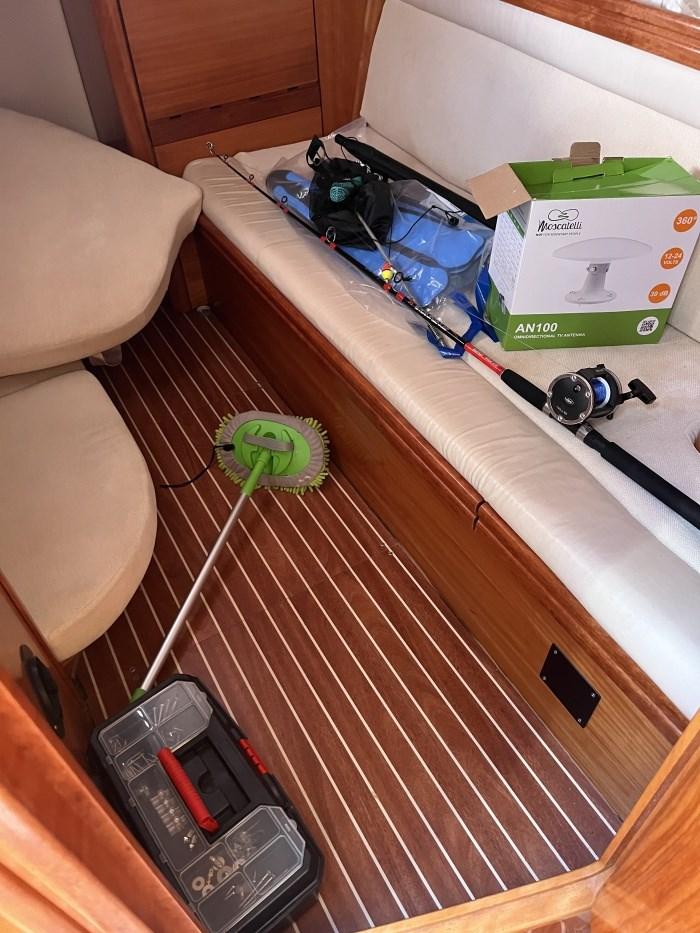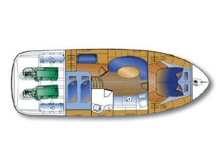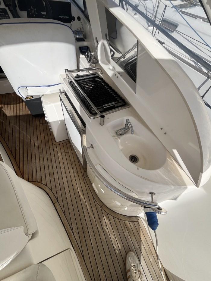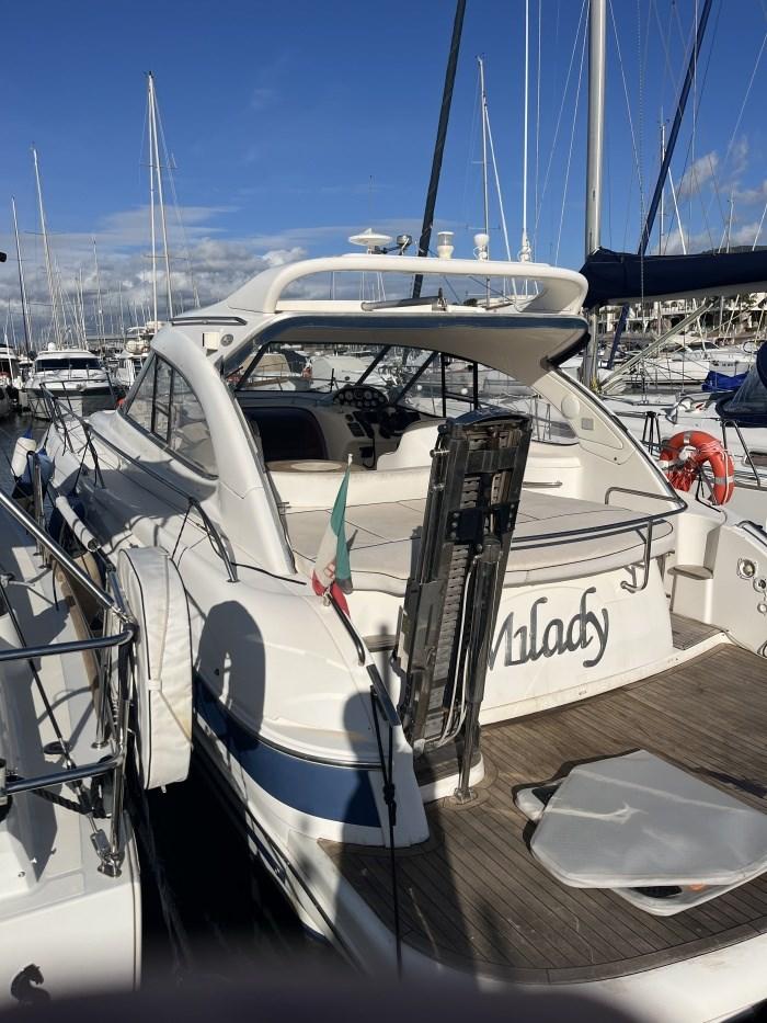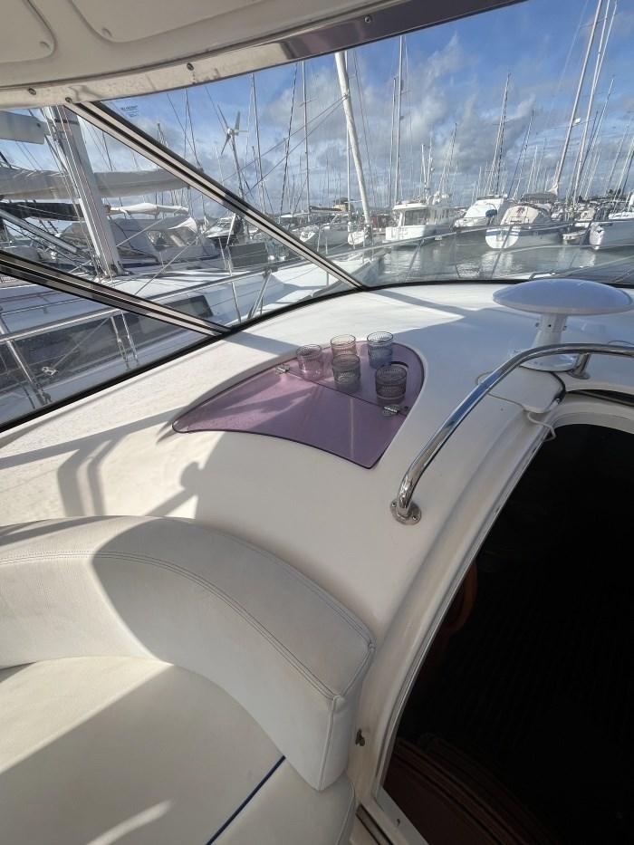 Alarme moteur, Eau sous pression, Douche de cockpit (C/F), Flaps hydrauliques, Hard top, Passerelle (Idraulica), Plateforme arrière (Maggiorata), Pompe de cale automatique, Cockpit en teck, Guindeau électrique, Echelle de bain.