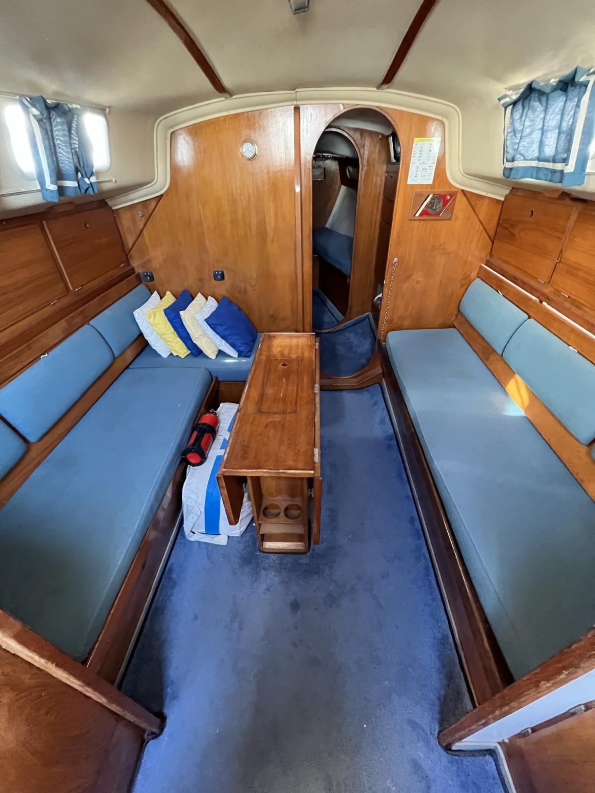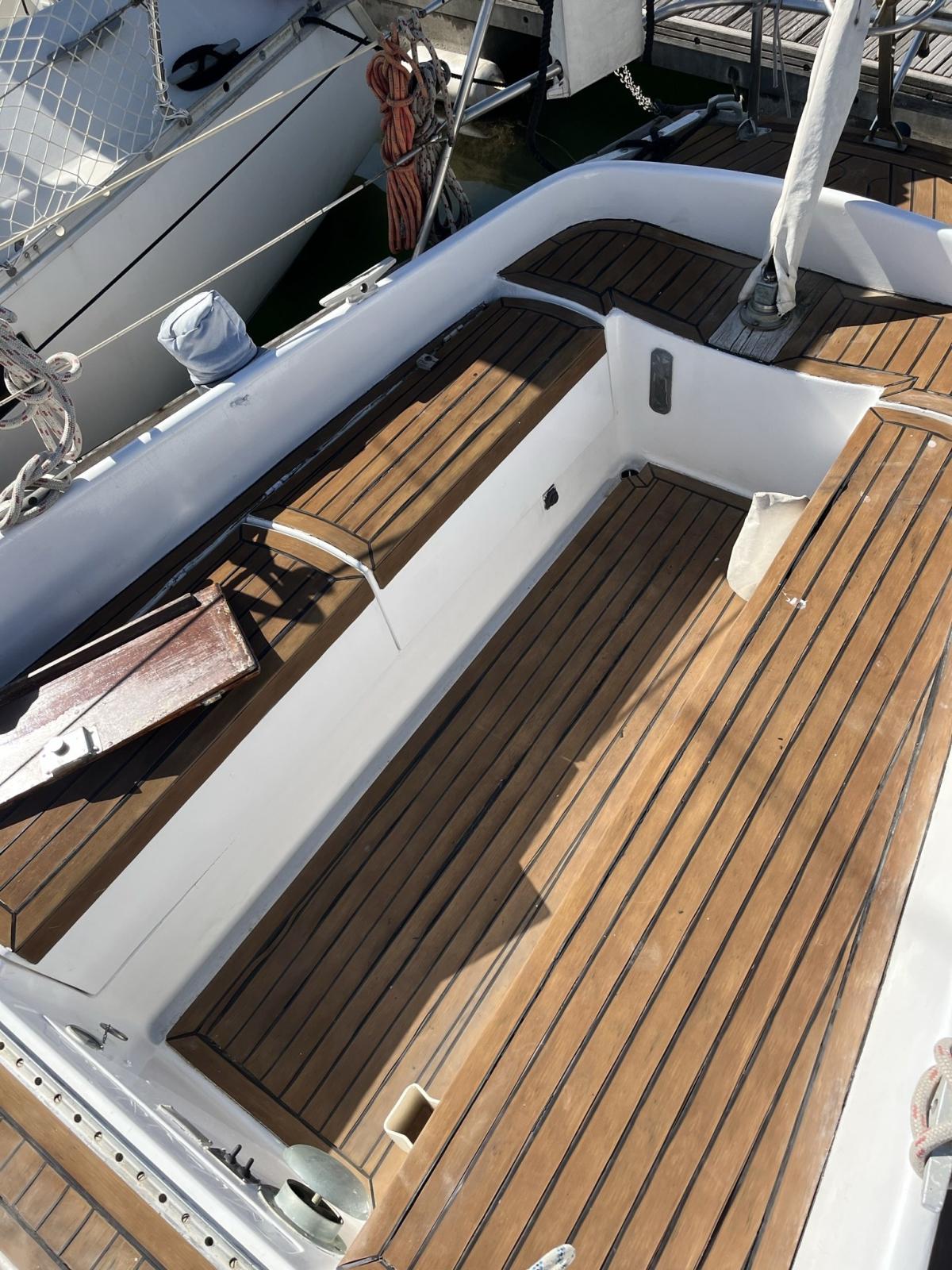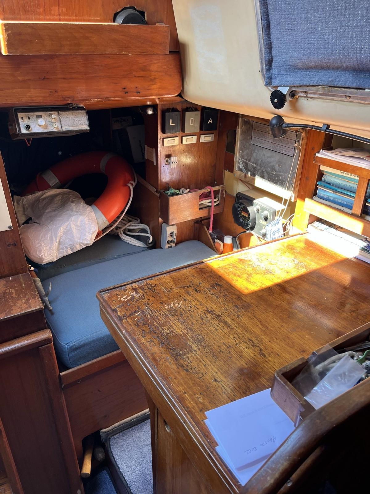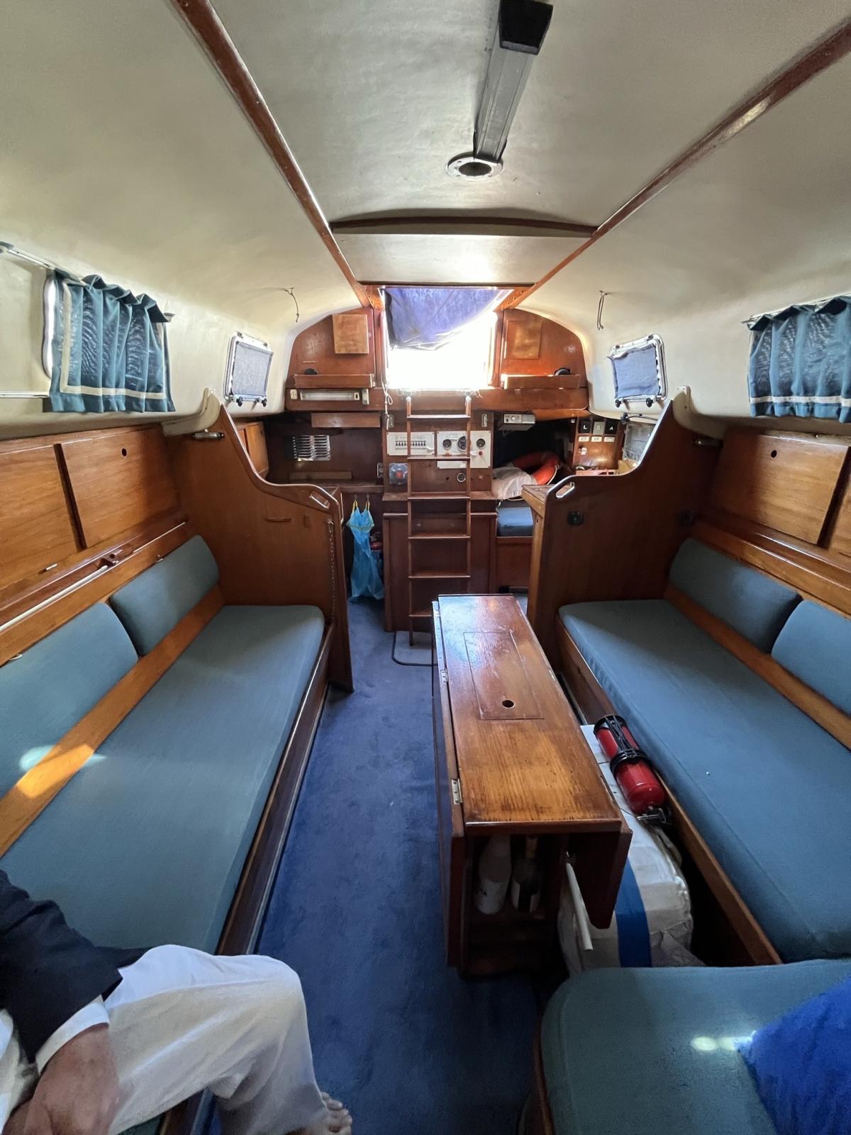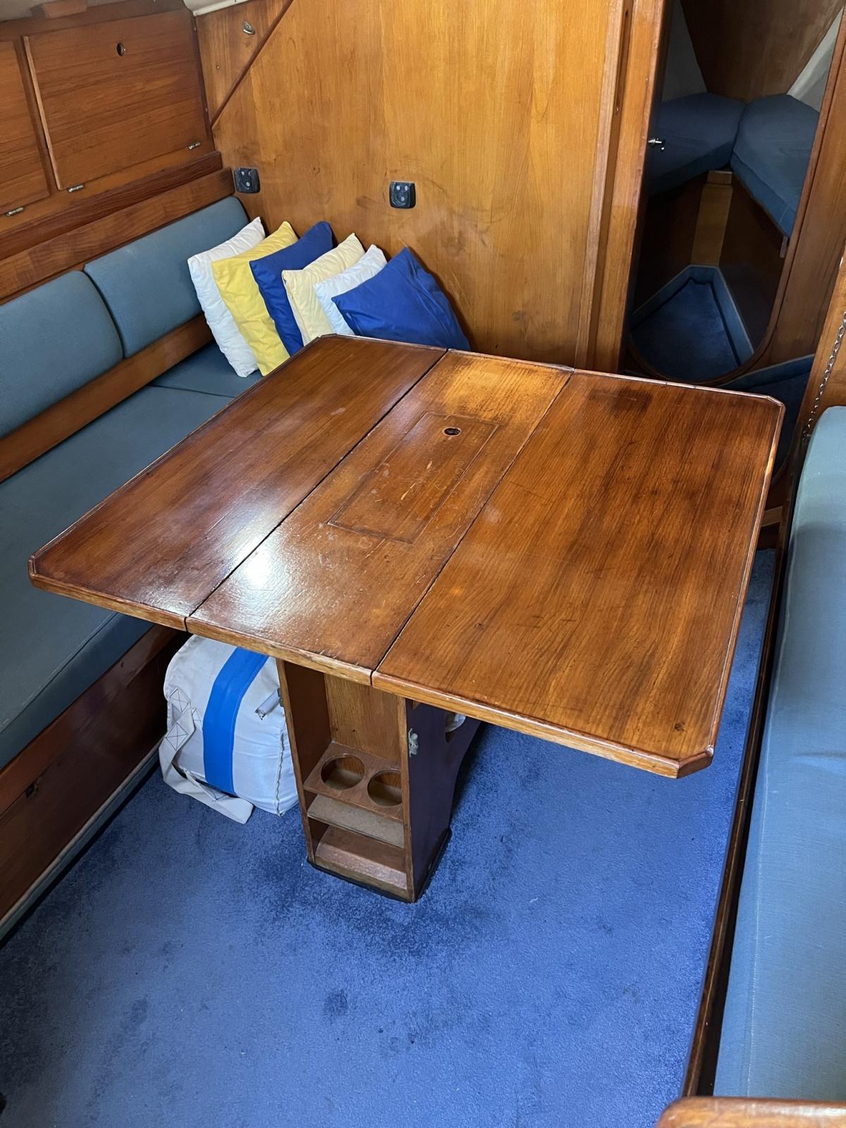 coque en fibre de verre ; mâts Canclini ; le deuxième propriétaire qui en est propriétaire depuis 1975 ; haubans originaux surdimensionnés pour la navigation océanique ; cadènes renforcées ; 2009; pont et cockpit Flexitex ; HAUTEUR DE LA DÎNETTE : 1.93 ; VOILES : grand-voile, génois, spin, tormentina, gennaker, génois léger original avec garrocci ; INTÉRIEUR : il n’y a pas 3 lits ; dans la brochure originale du chantier naval, elles sont indiquées en 5+2 : en fait, il y a 2 couchettes en forme de V dans la cabine avant, qui peuvent être reliées par le triangle, et trois couchettes dans la dinette. De ces trois couchettes, deux se trouvent sur le côté de la table centrale et peuvent être élargies pour devenir doubles ; la troisième est la couchette du navigateur, située dans le câble sous le cockpit, derrière la table du navigateur ; le bateau est présent dans le catalogue officiel « Sangermani », est enregistré auprès de l’Association « Vele Storiche Viareggio » et participe à ses rallyes depuis quelques années ; 2024 : Re-caoutchoutage Flexitex, lavage des réservoirs de carburant ; 5% de commission de courtage + 22% de TVA à la charge de l’acheteur (la TVA est calculée uniquement sur le montant de la commission)