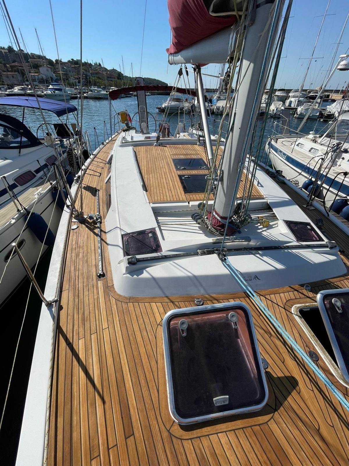 TRANSFÉRABLE AVEC L’ARTICLE 8.2 Hors TVA pour les sujets répondant à ces exigences ; 2023 : entièrement poli, nouveau pont complet en teck, moteur de guindeau d’ancre révisé, propulseur d’étrave rétractable révisé, moteurs de treuil électrique révisés, électronique remplacée par Simrad, traceur, VHF avec station wifi, radar Simrad. Pilote automatique, compas, GPS. Traceur cartographique dans le cockpit ; grand-voile lattée ; foc autovireur ; Génois, jennaker avec chaussette, chauffage et climatisation dans les deux cabines arrière, acajou laqué mat, 2023 remplacé 3 batteries de service ; 75 mètres de chaîne, 1 treuil électrique pour la plateforme arrière, 2 treuils électriques, 2 treuils pour le gennaker, tendeur de pataras, 2 volants ; passerelle, révisée en octobre 2023 révisée, 2023 : Revêtement auto-polissant Jotum Antifouling Nouveau, Antifouling à matrice dure en octobre 2023 ; 1 ancre de secours ; diverses cordes d’ancrage dont une spécifique pour l’ancrage au sol de 50 mètres ; 1/2025 NOUVEAU : Radar, Traceur GPS B&G, étai avant, antenne VHF, girouette, réfrigérateur, onduleur, service moteur, étai et foc sur enrouleur ; 5 % de commission de courtage + 22 % de TVA à la charge de l’acheteur (la TVA est calculée uniquement sur le montant de la commission)