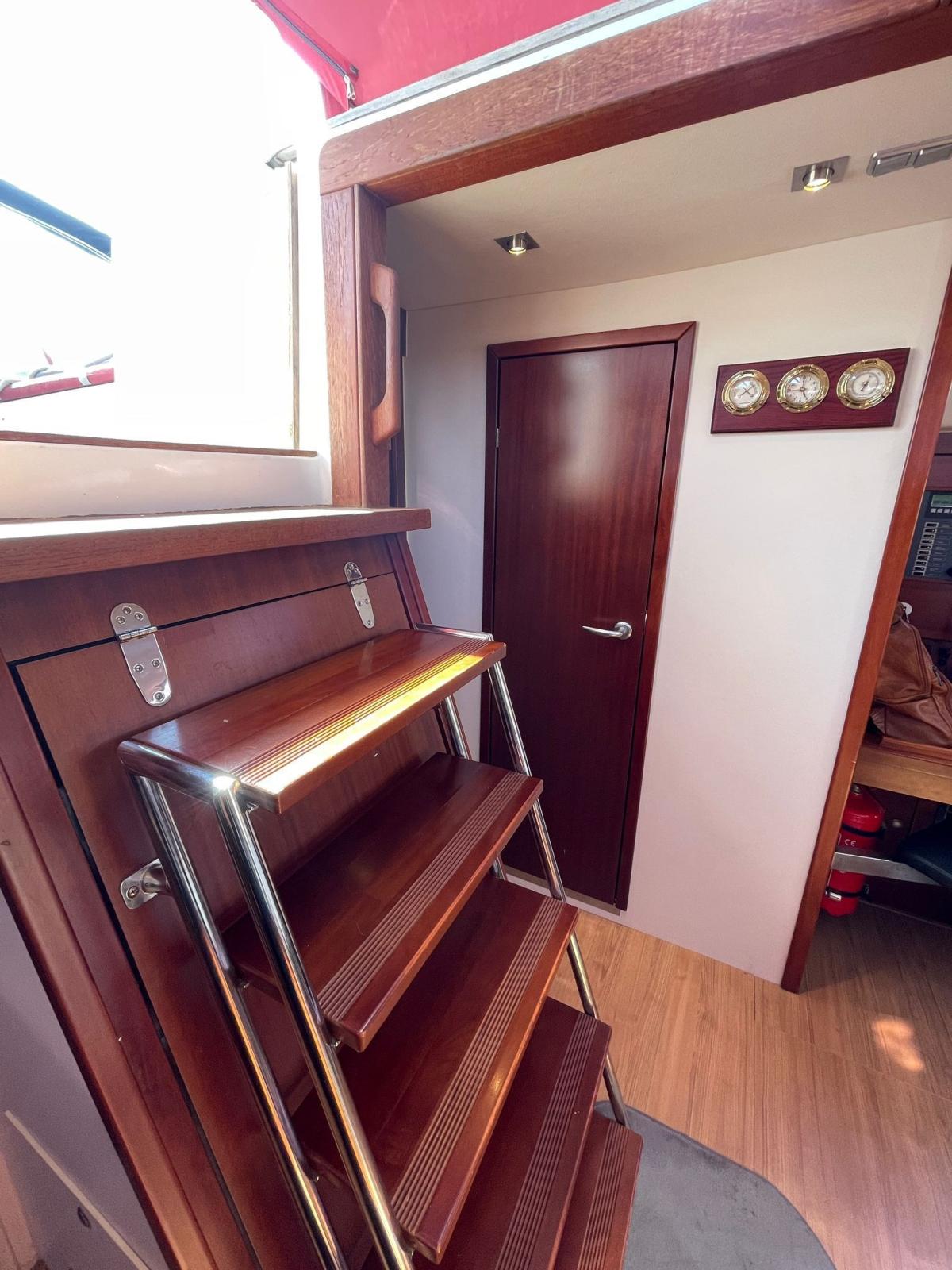 Alarme moteur, Eau sous pression, 6 Batteries, Passavant en teck, Douche de cockpit (calda e fredda), Double barre à roue, Propulseur d'étrave (rettrattile), Passerelle, 2 Pompe de cale électrique, Pompe de cale manuelle, Prise de quai, Onduleur, Guindeau électrique, Gréement monotoron, Echelle de bain, 2 Winch électrique, Windex.