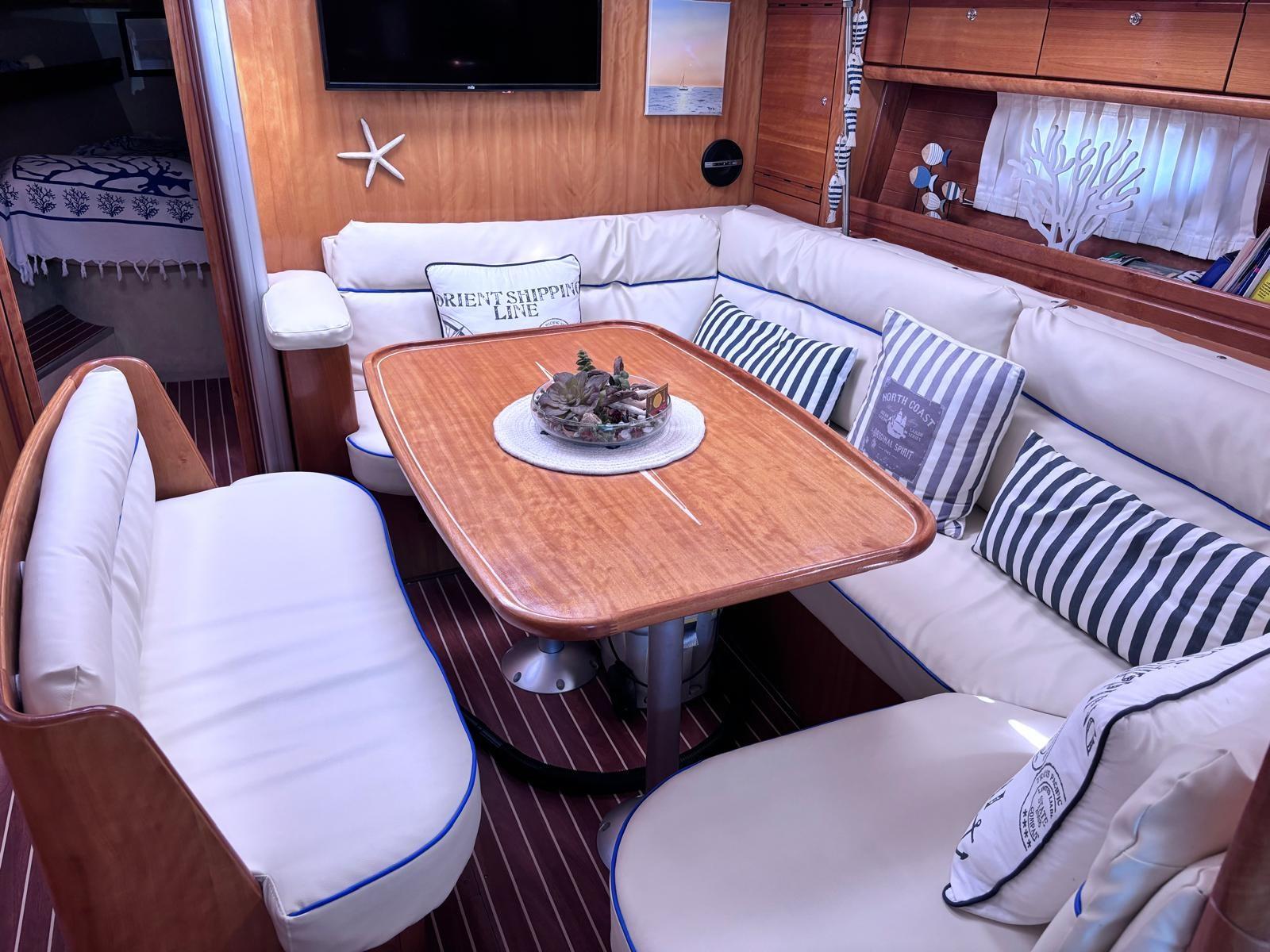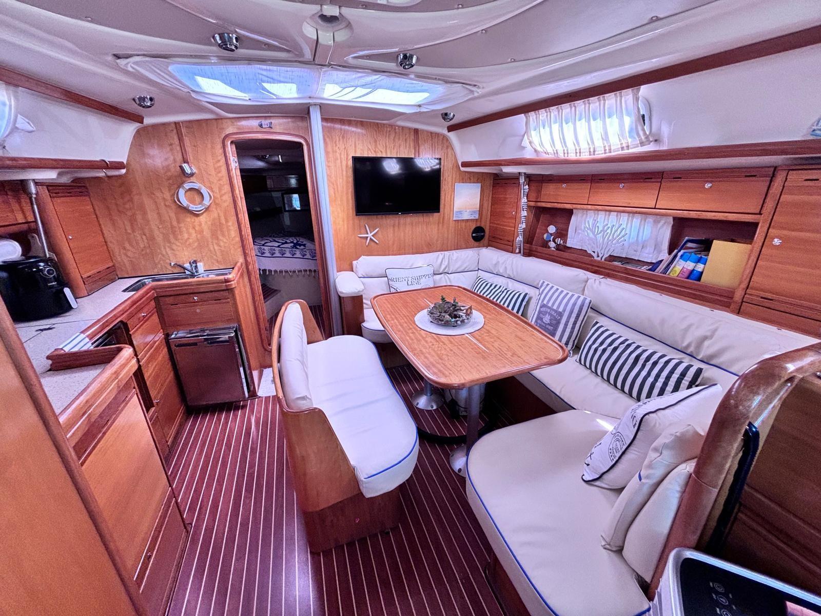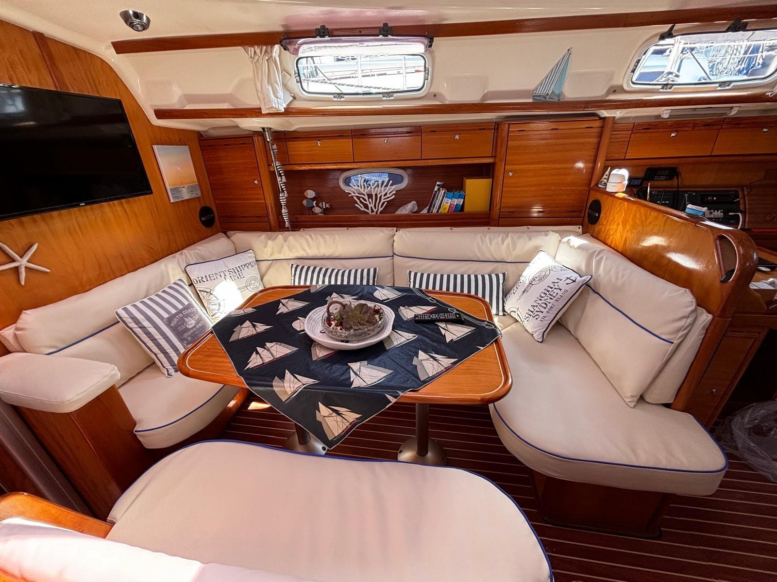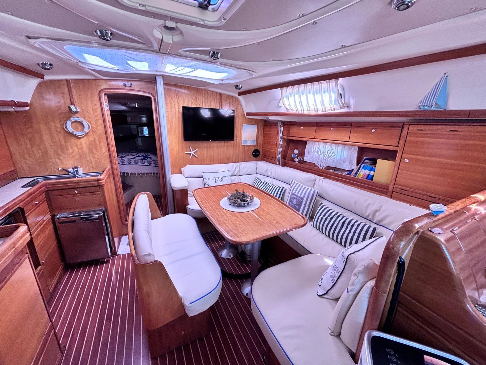 2022 NOUVEAU : Joint Saildrive et pied complet ; 2022 NOUVEAU : guindeau d’ancre, ancre et chaîne 60 mt, remplacement des prises d’eau de mer ; frigo neuf, 2024 NEUF : 2x110 w panneaux solaires, bimini, auvent, lazy bag, draps, passerelle, coussins extérieurs, boliler, GPS cartographique ; 2023 : toutes les lumières LED remplacées ; remplacement de la batterie moteur 1x100 ha 2024 NOUVEAU : 2 services de batterie x140 ha ; sellerie cuir des roues, prises USB dans le cockpit, rembourrage du matelas des 3 cabines en hypoallergénique, sellerie de la dînette comprenant du caoutchouc mousse neuf, coussins d’étrave complets à cellules fermées, transformation de la table de cockpit en teck, remplacement de robinetterie complète, montage de 2 toilettes électriques, lumières de courtoisie du cockpit, climatisation portable, nouvelle passerelle, nouvelle nappe de table et enjoliveur de roue, nouveau sac facile de grand-voile ; Bateau pneumatique Eurovinil 2.50 2018, Bateau hors-bord Honda 2.5 cv 2018 ; 10 ailes avec chaussette ; 2015 Grand-voile lattée sur chariots, foc d’origine neuf ; Genoa Doyle 2022 nouveau ; 5% de commission de courtage + 22% de TVA à la charge de l’acheteur (la TVA est calculée uniquement sur le montant de la commission)