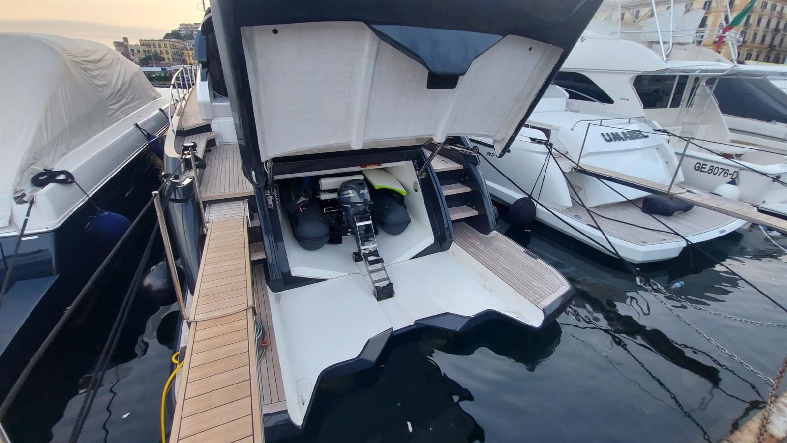 Propulseur de poupe (Sidepower), Propulseur d'étrave (Sidepower), Passerelle (idrualica a scomparsa Besenzoni), Guindeau électrique (Lofrans 1500 W), Echelle de bain (a scomparsa Besenzoni), 2 Winch électrique arrière (Lofrans 1000 W).