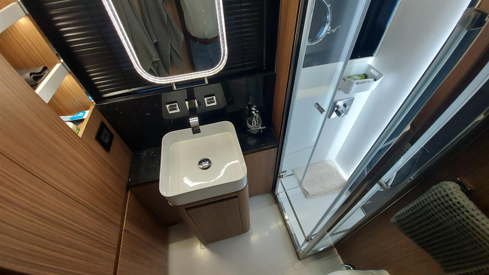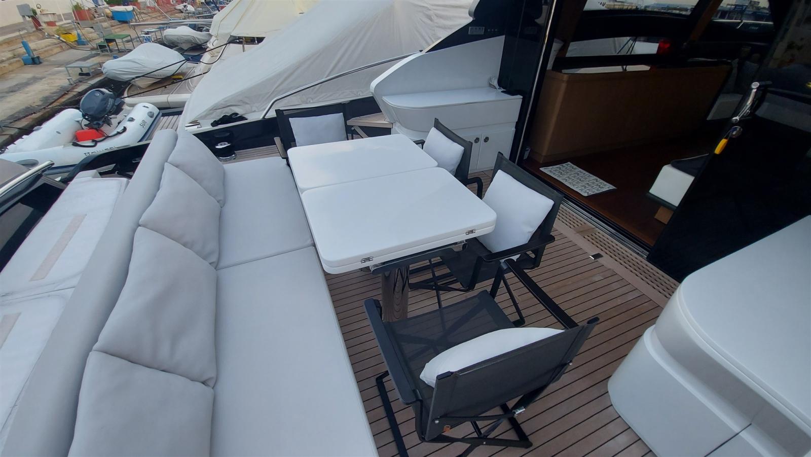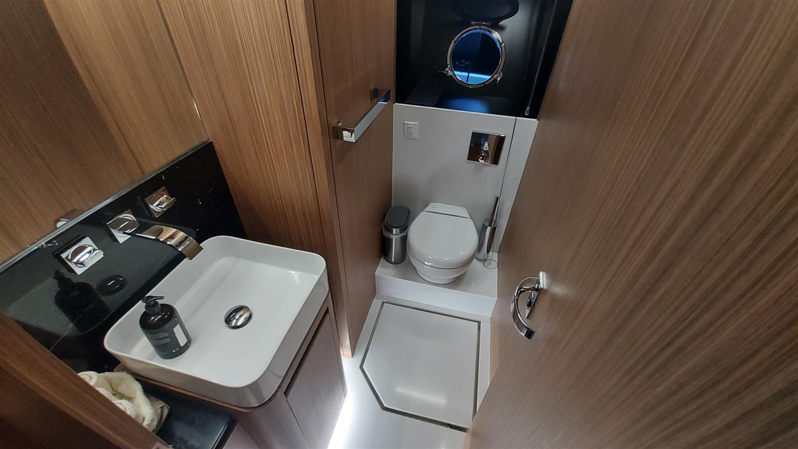 Attention aux détails et aux détails, en hiver remis dans le hangar sur le chantier. Garantie coque et usine valable jusqu’en juillet 2022! Intérieur en bois d’ébène clair, parquet wengè clair, sellerie cuir, full teck, coque et toit rigide métallisé gris foncé et superstructure blanche.