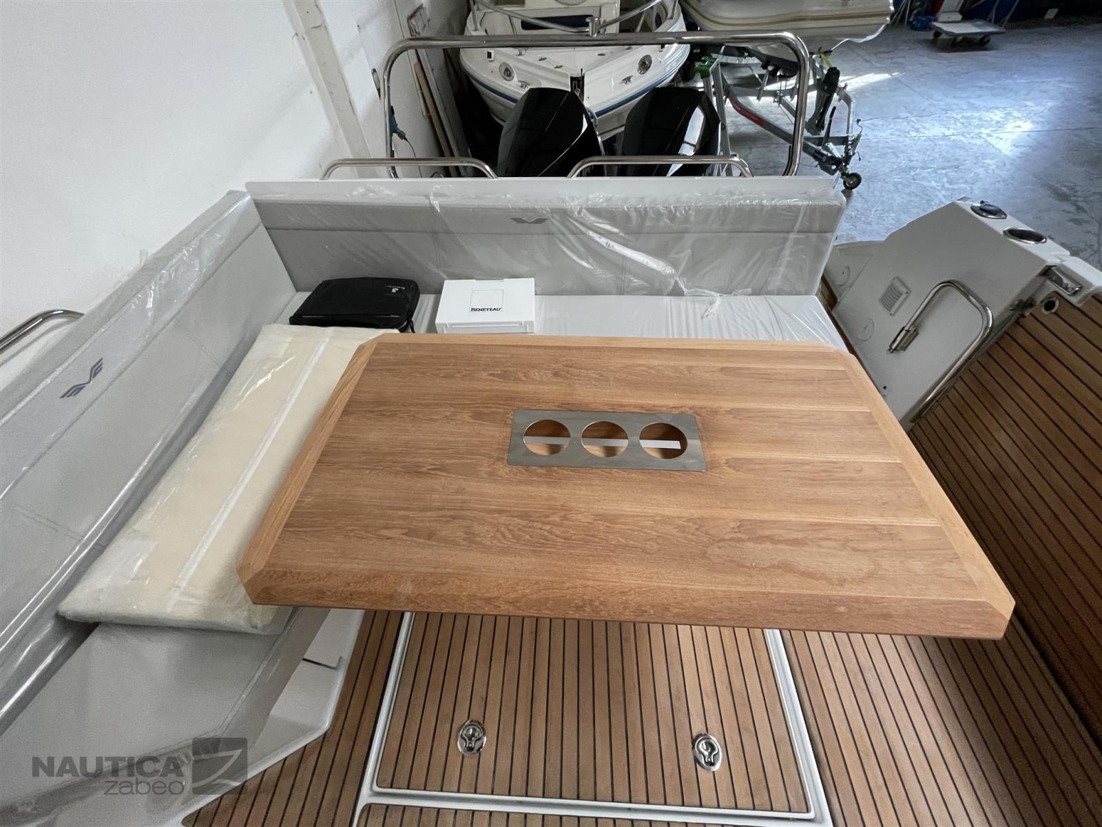 Alarme moteur, 2 Batteries, Douche de cockpit, Flaps électriques (Zip wake), Indicateurs de flaps, Éclairage de courtoisie, Plateforme arrière (Piattaforme da bagno annesse), Prise de quai, Guindeau électrique, Echelle de bain.