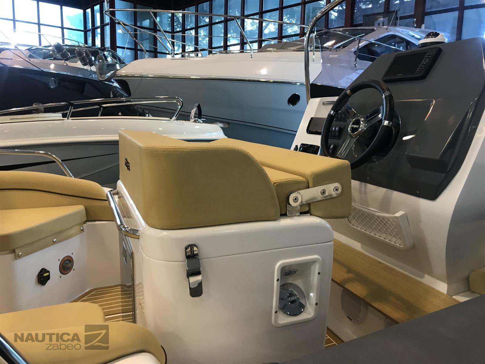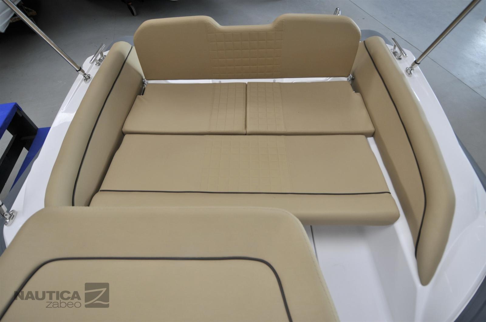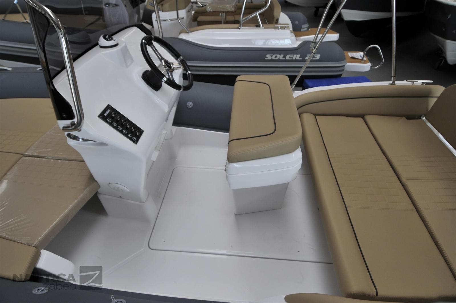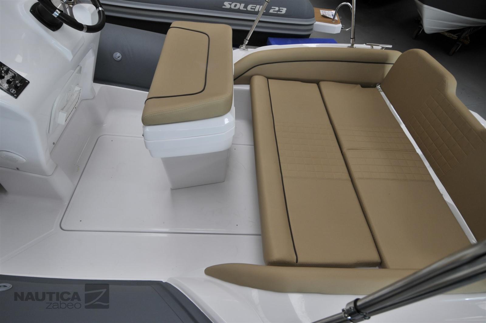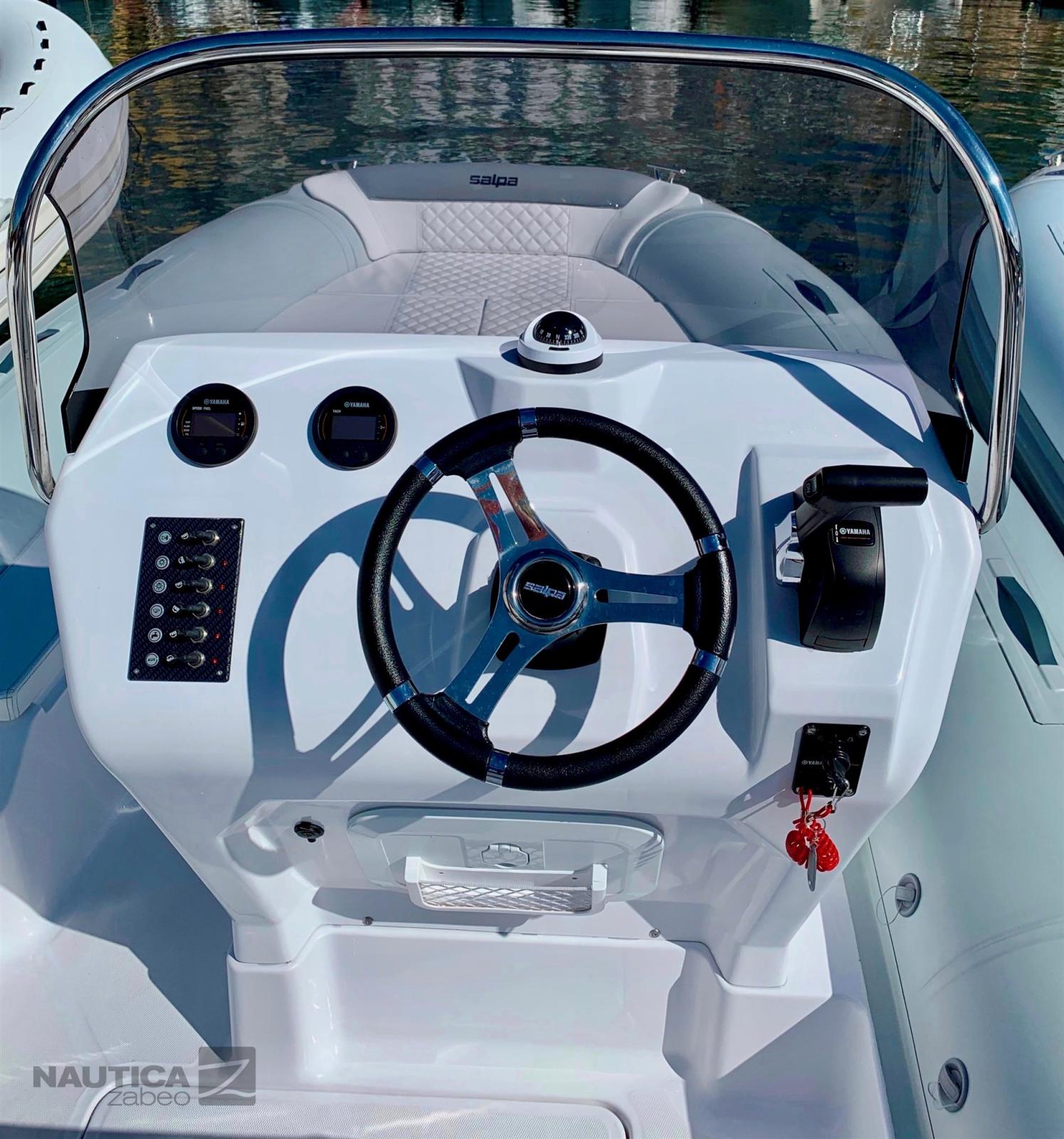 Accessoires standard : 3 crochets de remorquage et d’amarrage, 4 bornes en acier inoxydable, compas, console de pilotage édition sport, coussins complets à cellules fermées, coffre à mouillage avec écoutille et rouleau, coffre sous le canapé arrière, coffres sous le bain de soleil avant, système électrique complet, pare-brise avec gyroscope en acier inoxydable, plates-formes arrière en fibre de verre, pompe de cale électrique automatique, tableau de bord électrique, Échelle marine rétractable en acier inoxydable, klaxon électrique, couleur tubulaire de votre choix avec tambour, feux de navigation, compartiment à piles, interrupteur de batterie, volant Salpa à 3 branches et gonfleur manuel.