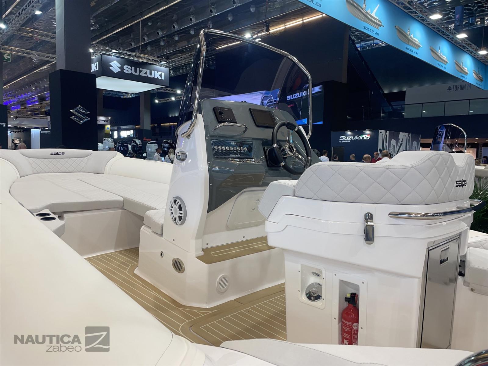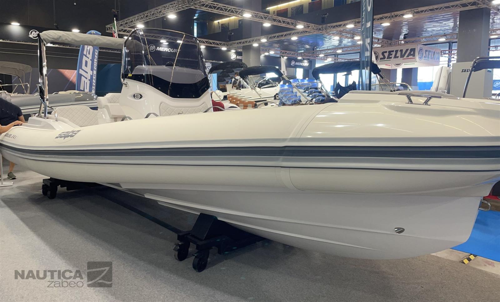 Equipement standard inclus dans le prix : 3 œillets en acier inoxydable, 4 taquets en acier inoxydable, L, prise d’air GAS, pare-brise avec gyromètre en acier inoxydable, coussins complets à cellules fermées, crochets de levage, feux de navigation, coffre sous la console, coffre sous le siège de barre, système électrique complet 12 V, klaxon, armoire de cuisine, plate-forme arrière, pompe de cale automatique, échelle télescopique, Canapé arrière avec dossier rabattable, petit siège devant la console de direction, pompe de direction hydraulique (sans cylindre moteur), volant, boîtier de batterie, boyaux militaires Orca 866 et gonfleur manuel.
