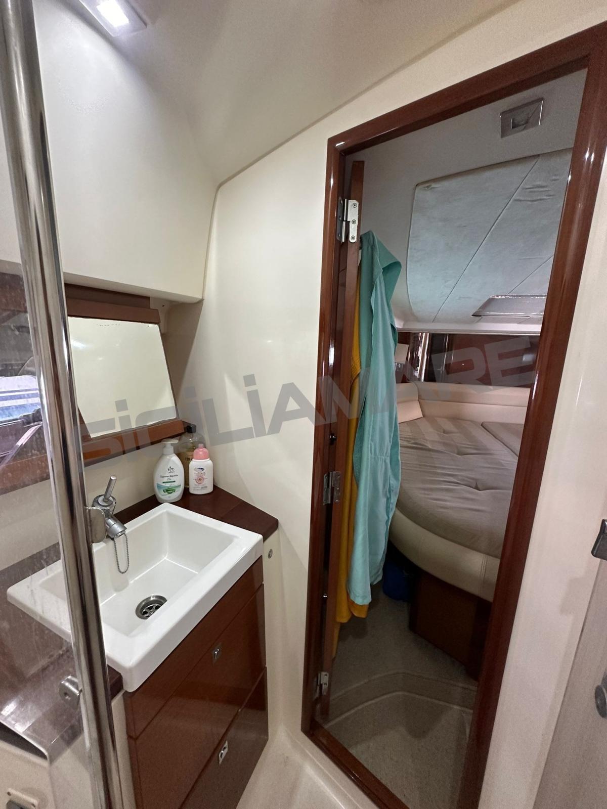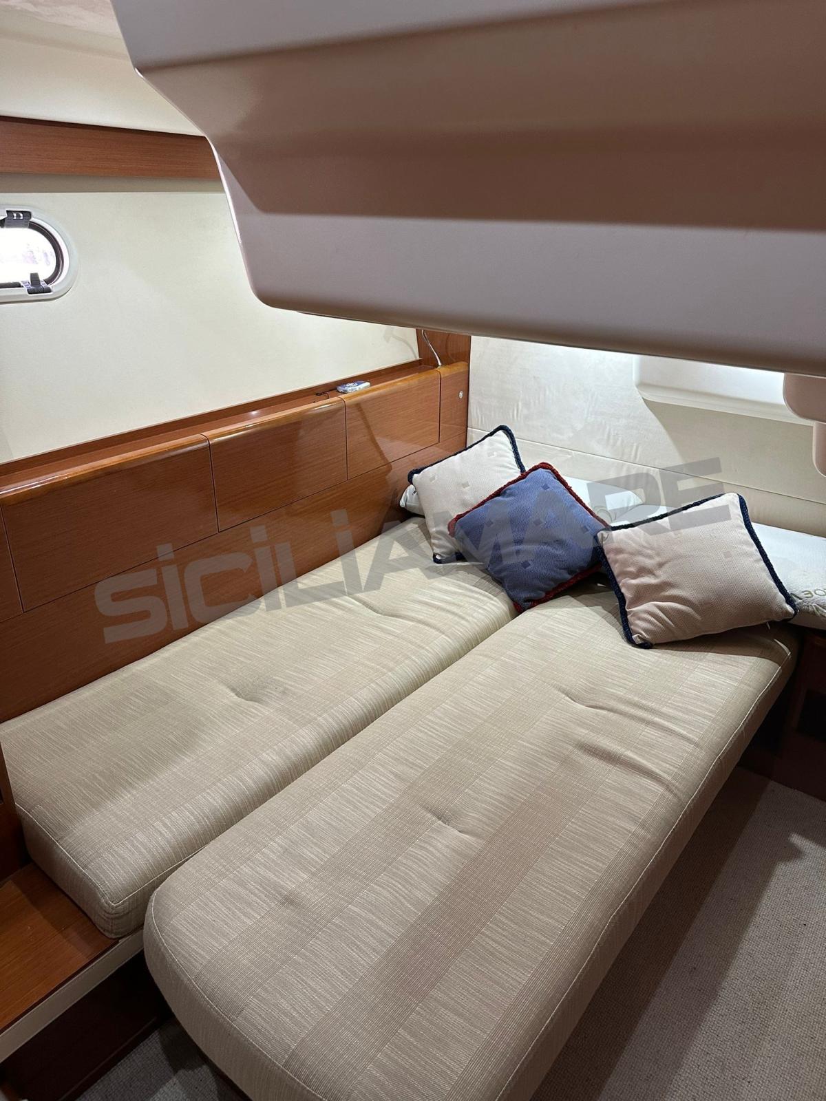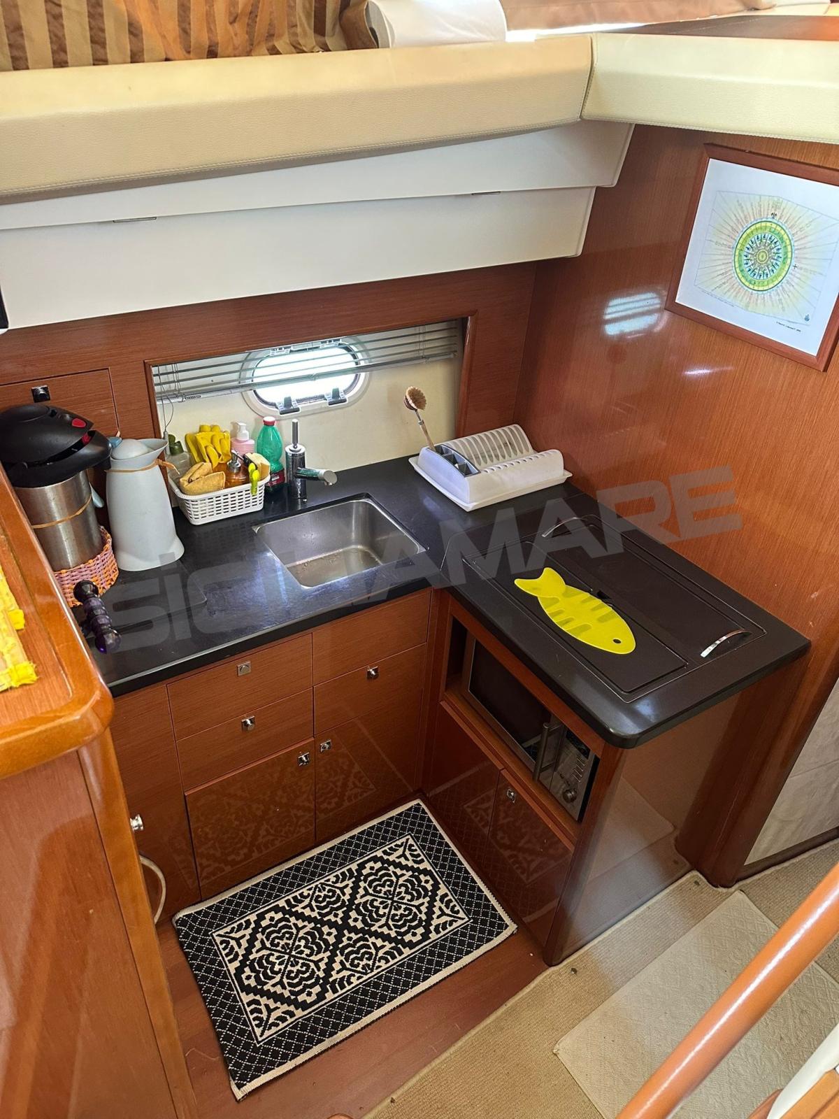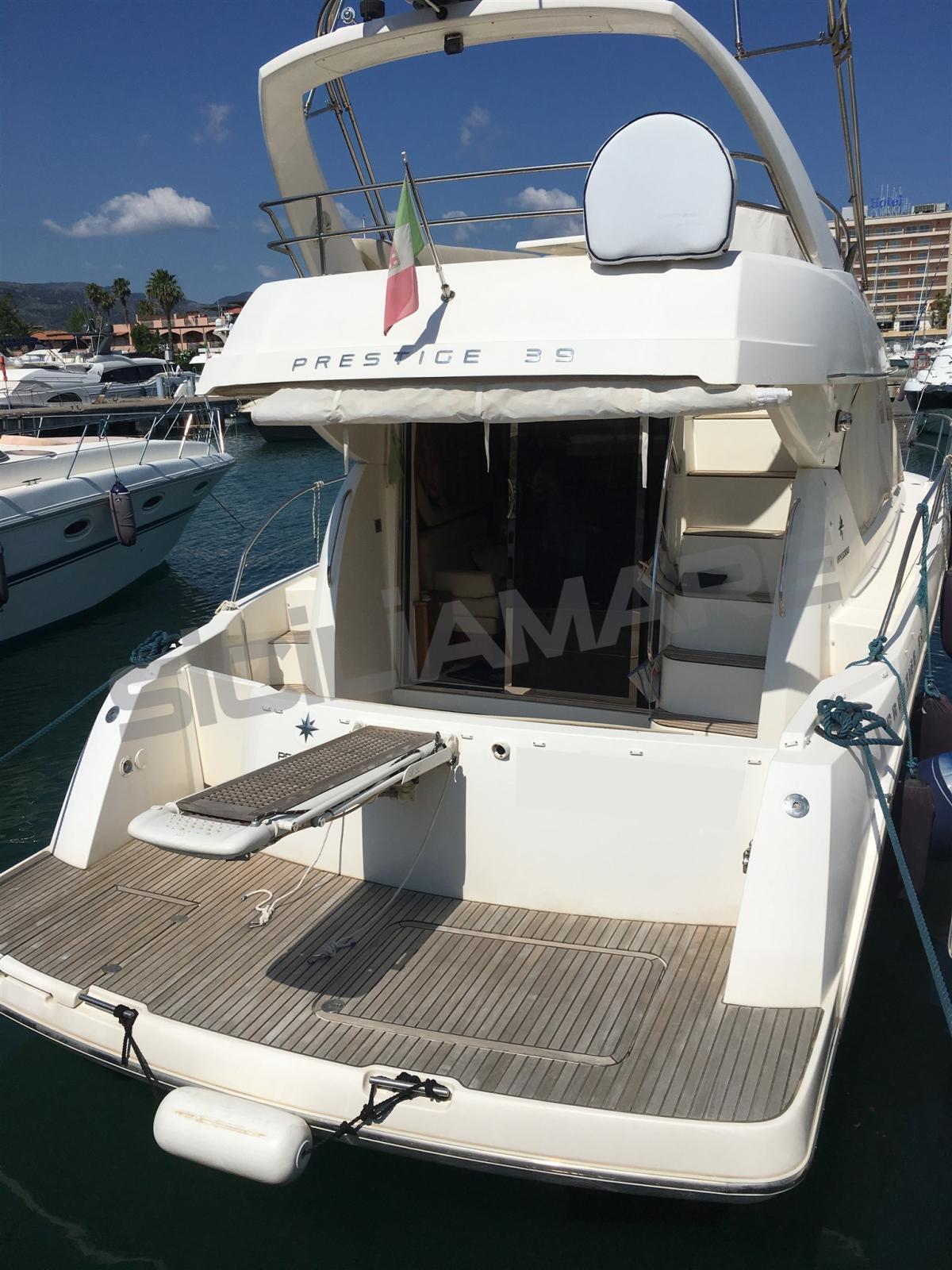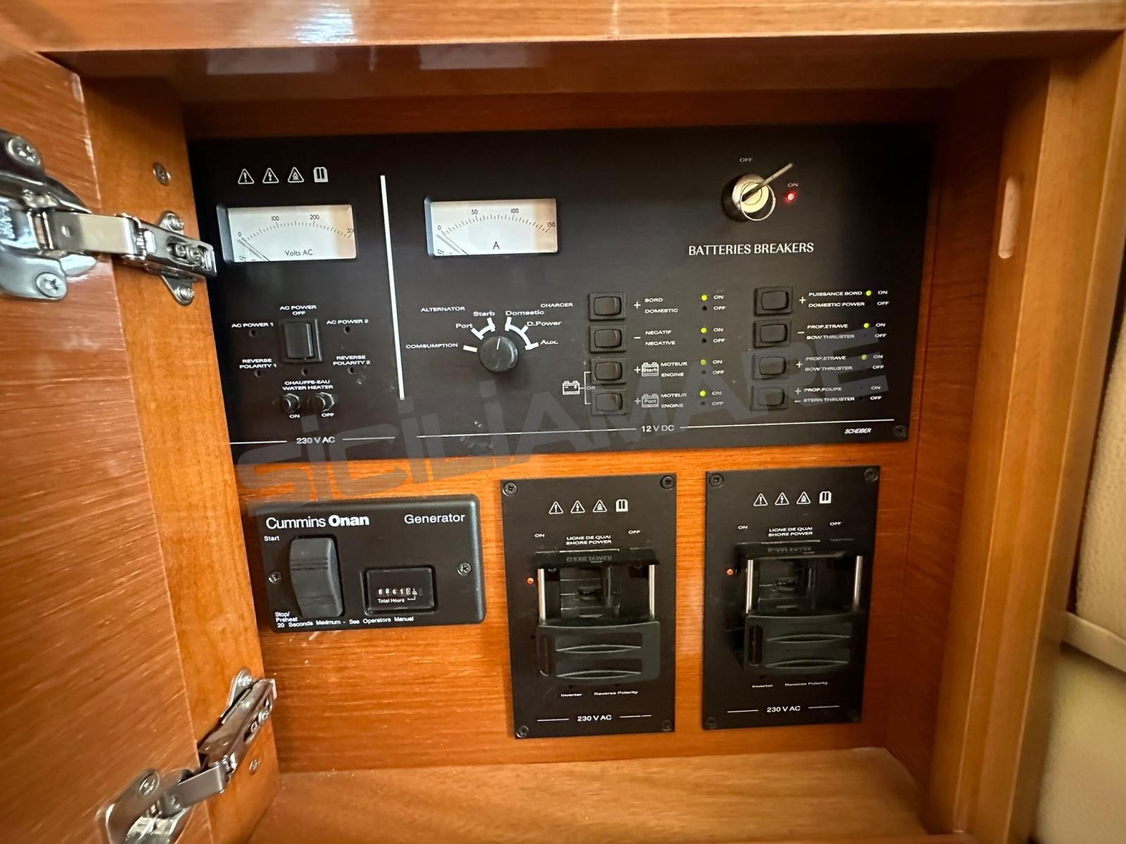 Alarme moteur, Alarme de pompe de cale, Eau sous pression, Douche de cockpit, Double barre à roue, Phare de poursuite, Flaps électriques, Indicateurs de flaps, Éclairage de courtoisie, Passerelle (idraulica), Plateforme arrière (in legno), Pompe de cale automatique, Pompe de cale manuelle, Porte latérale (in acciaio inox), Cockpit en teck, Prise de quai, Rollbar, Guindeau électrique, Echelle de bain, Corne.