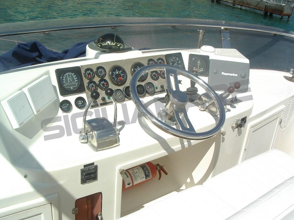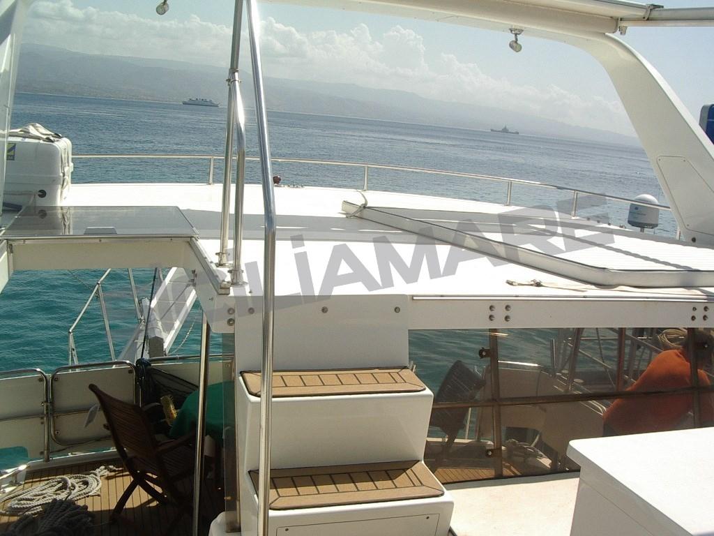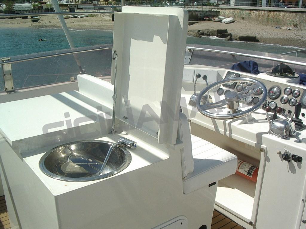 Alarme moteur, Eau sous pression, 5 Batteries (4 x 220 Ah + 40 Ah), Chargeur de batterie (40 Ah), Douche de cockpit, 2 Flaps hydrauliques, Hard top, Éclairage de courtoisie, Passerelle (Idraulica 2014), Plateforme arrière, Pompe de cale automatique, Prise de quai, Onduleur, Rollbar, Guindeau électrique, Echelle de bain.