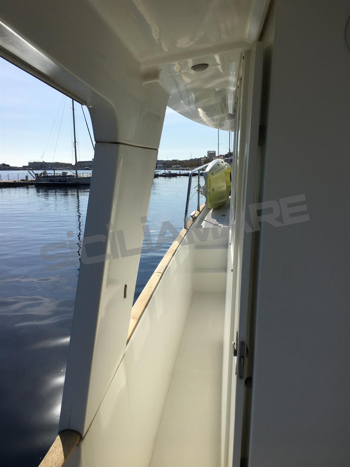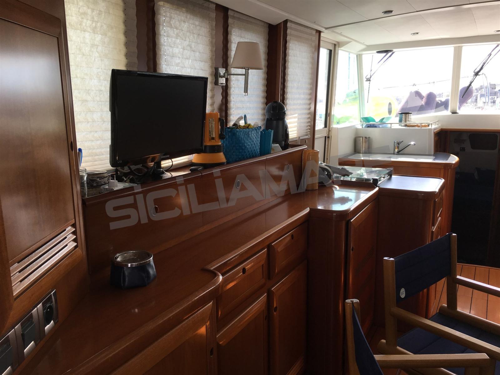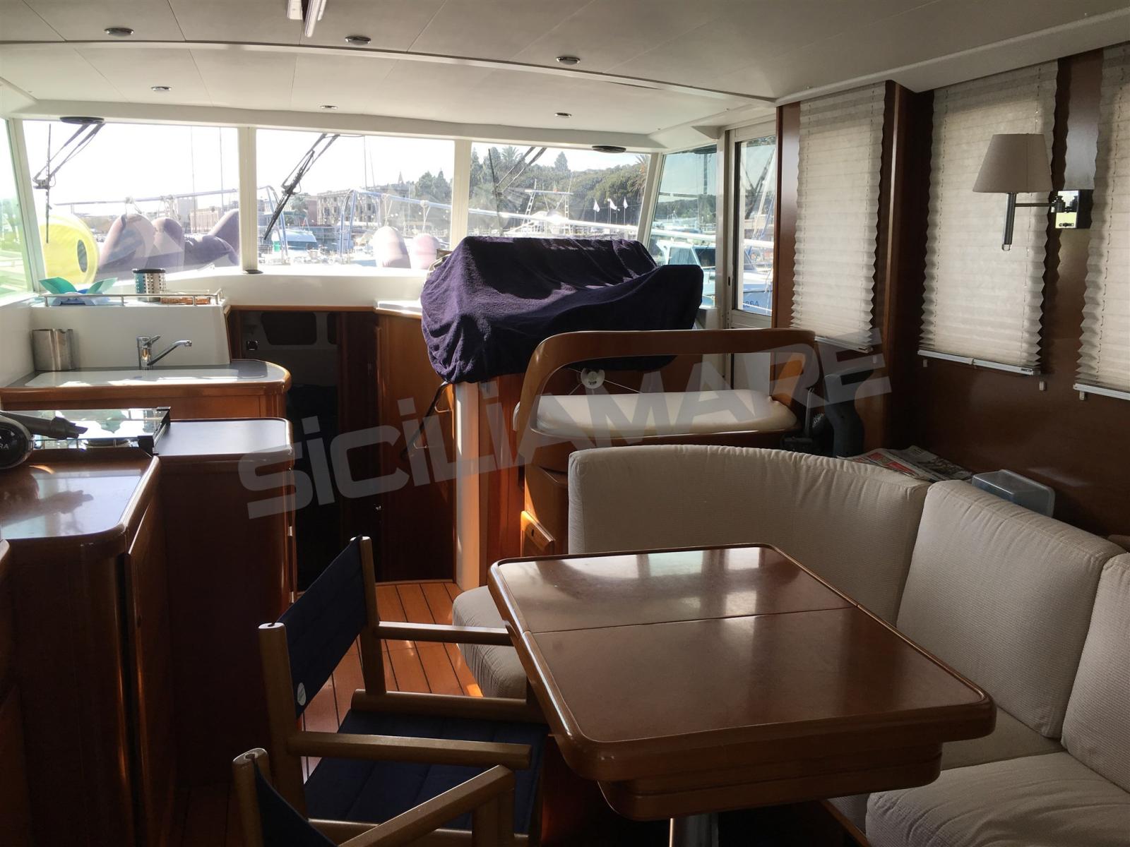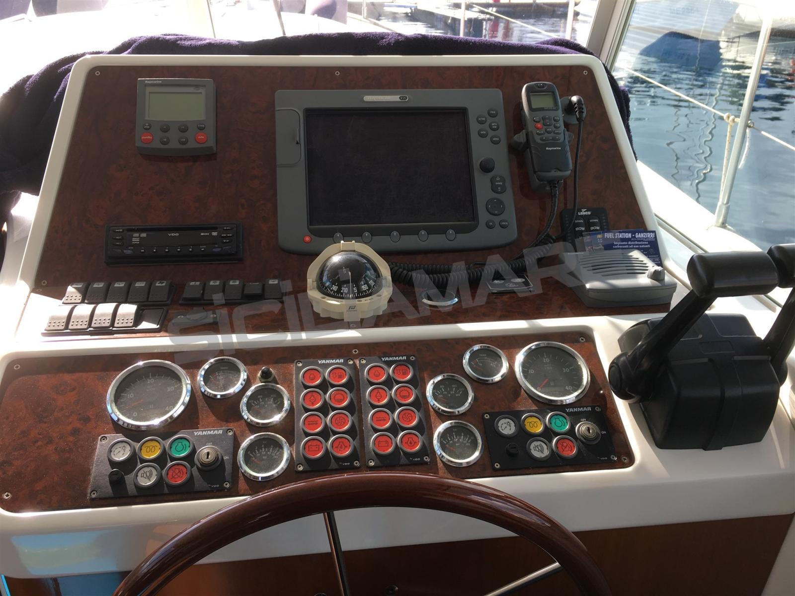 Alarme moteur, Alarme de pompe de cale, Eau sous pression, Couleur spéciale, Douche de cockpit, Double barre à roue, Phares fixes arrière, Phare de poursuite, Flaps hydrauliques, Grue de flybridge, Extincteur(s) fixe(s), Indicateurs de flaps, Éclairage de courtoisie, Passerelle, Plateforme arrière, Pompe de cale manuelle, Porte latérale, Porte latérale, Cockpit en teck, Prise de quai, Onduleur, Guindeau électrique, Echelle de bain, Système de filtration des eaux usées, table de cockpit, Annexe, Filières avec sortie latèrale, Corne.
