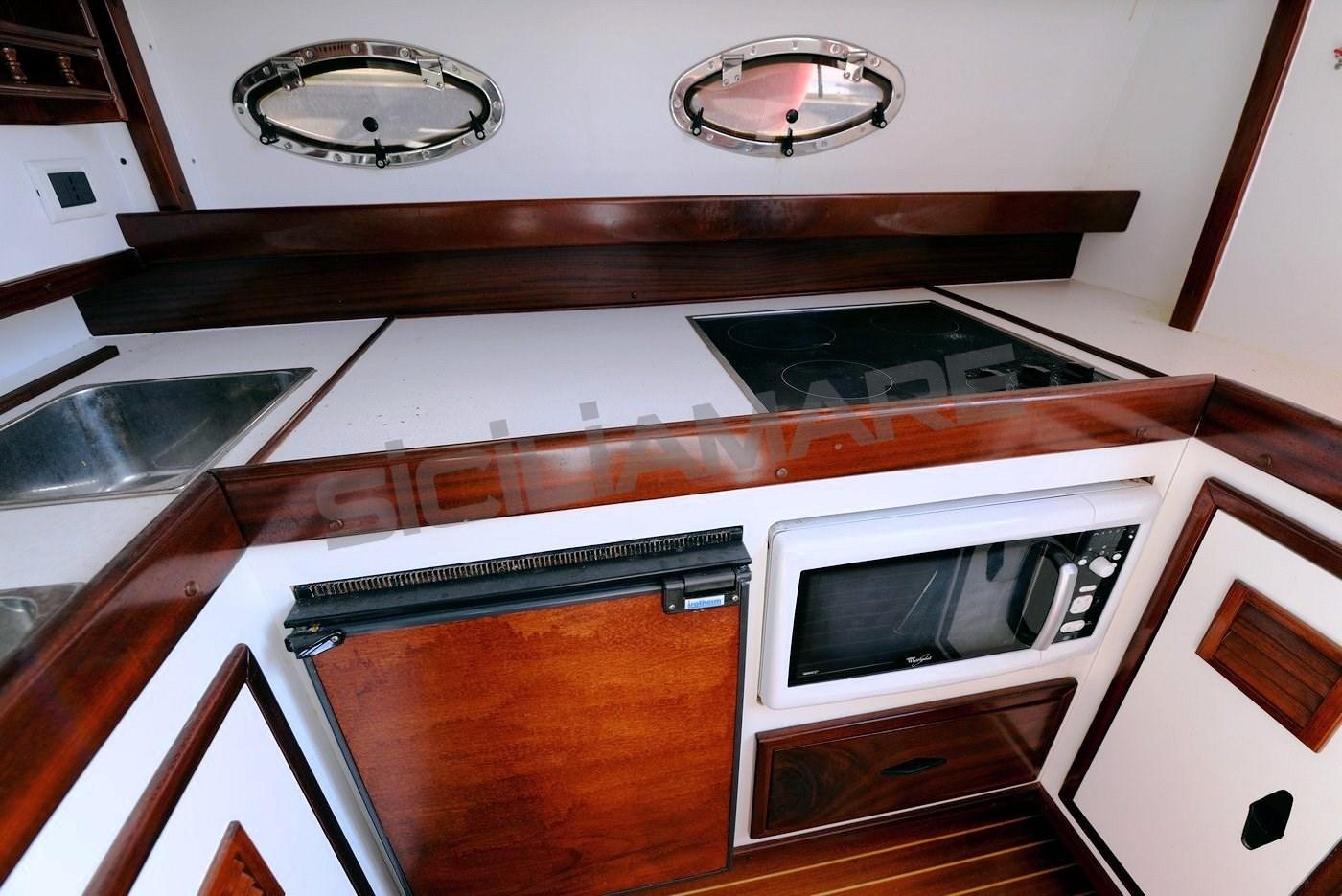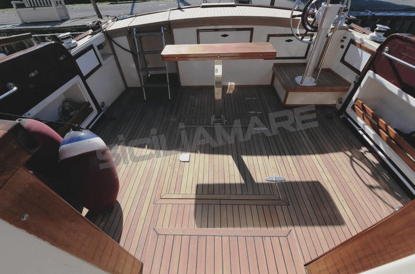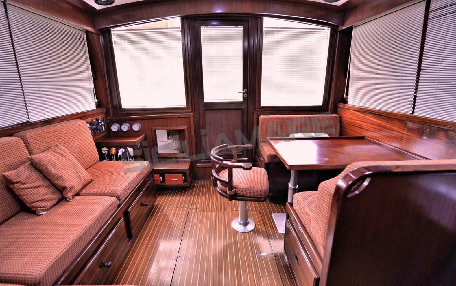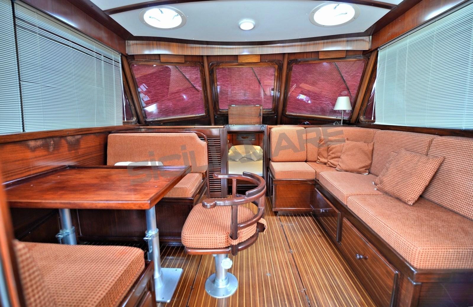 Eau sous pression, Douche de cockpit, Double barre à roue, Phare de poursuite, Flaps hydrauliques, Extincteur(s) fixe(s), Indicateurs de flaps, Éclairage de courtoisie, Passerelle, Pompe de cale automatique, Porte latérale, Cockpit en teck, Prise de quai, Connexion eau sous pression à quai, Guindeau électrique (Con campana per tonneggio), table de cockpit, Table pliante de salon, Annexe, 2 Winch électrique arrière.