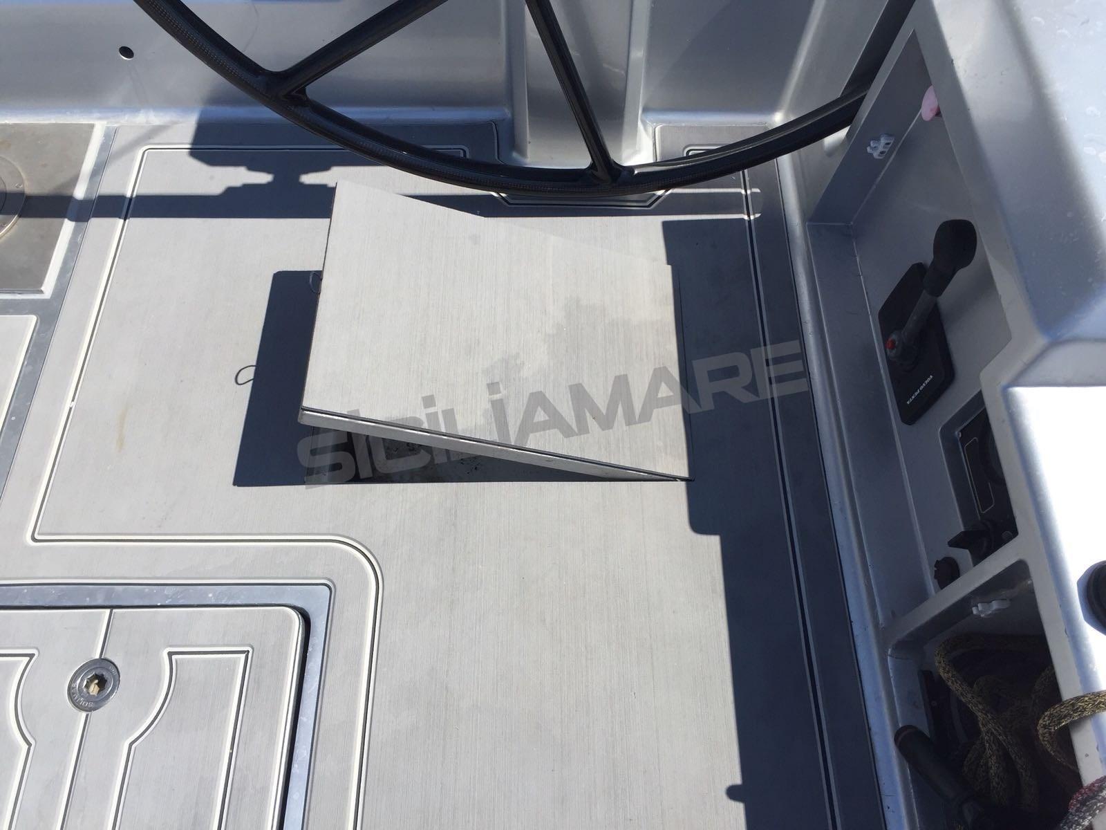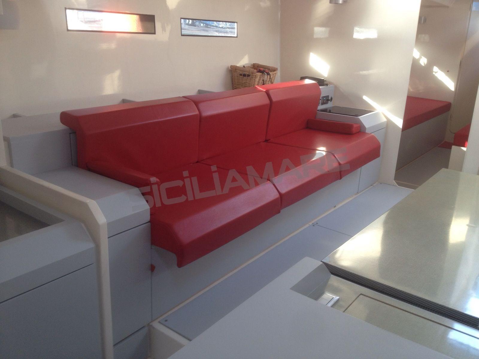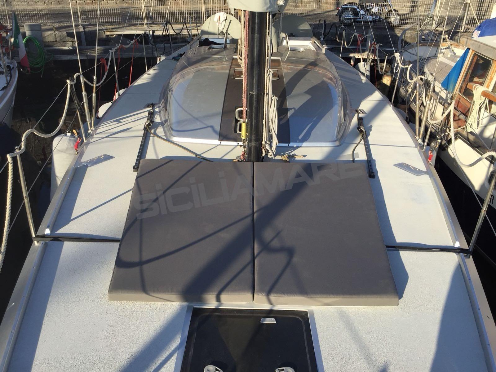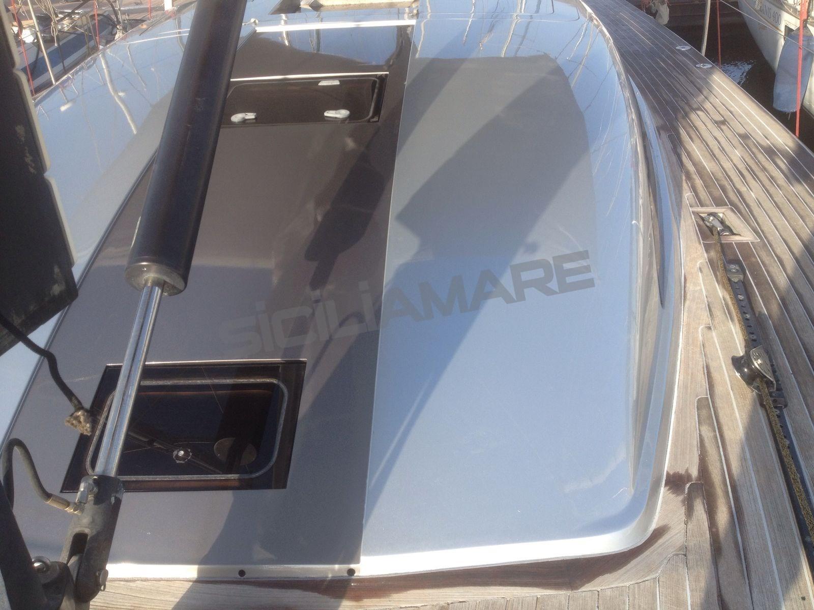 Alarme moteur, Ancre (custom Vismara), Eau sous pression, Chargeur de batterie (100 Ah), Douche de cockpit, Éclairage de courtoisie, Moteur d'annexe (FB tender), Passerelle (carbonio), Cockpit en teck, Prise de quai, Gréement Rod, table de cockpit (a scomparsa), Annexe, 3 Winch électrique (Harken custom 3 v).