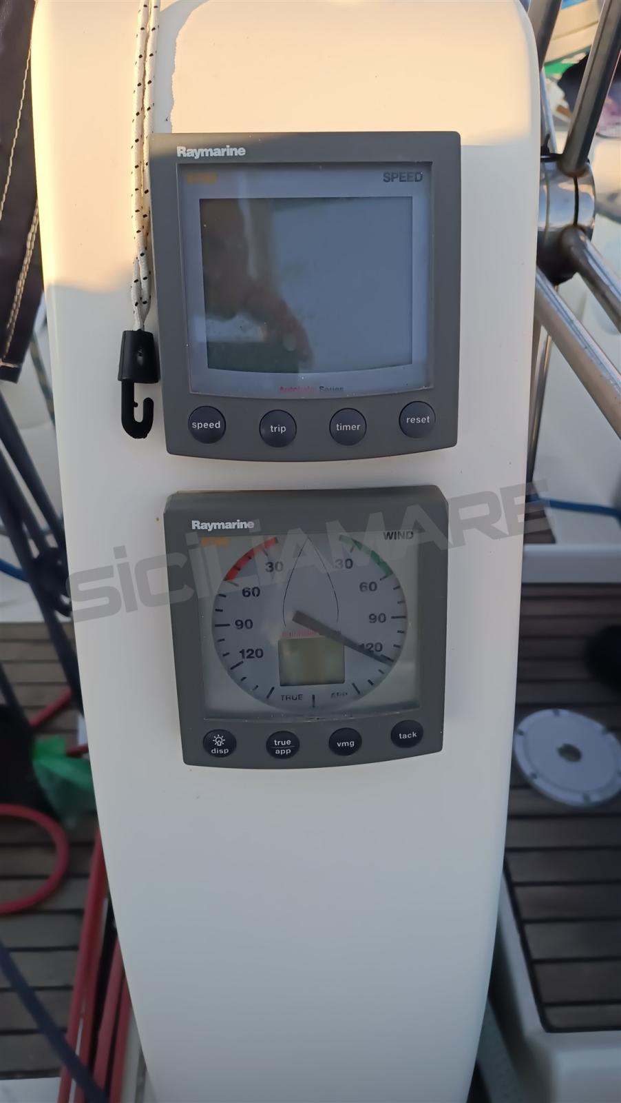 Alarme moteur, Alarme de pompe de cale, Eau sous pression, Douche de cockpit, Phares fixes arrière, Éclairage de courtoisie, Moteur d'annexe, Panneau solaire, Passerelle, Pompe de cale automatique, Pompe de cale manuelle, Cockpit en teck, Prise de quai, Répétiteur électronique, Guindeau électrique, Gréement Rod, Echelle de bain, Chaise support HB, table de cockpit, Table pliante de salon, Annexe, Corne, 4 Winch, Windex.