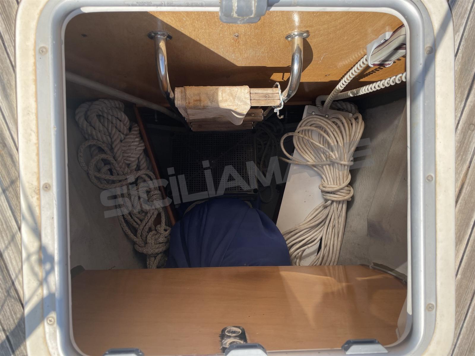 Alarme moteur, Ancre (+ 70 mt. catena 2022), Eau sous pression, Passavant en teck, Douche de cockpit, Double barre à roue, Éclairage de courtoisie, Moteur d'annexe, Passerelle, Plateforme arrière, Pompe de cale automatique, Pompe de cale manuelle, Cockpit en teck, Prise de quai, Guindeau électrique, Gréement monotoron, Echelle de bain, Chaise support HB, table de cockpit, Annexe, 4 Winch, 3 Winch électrique.