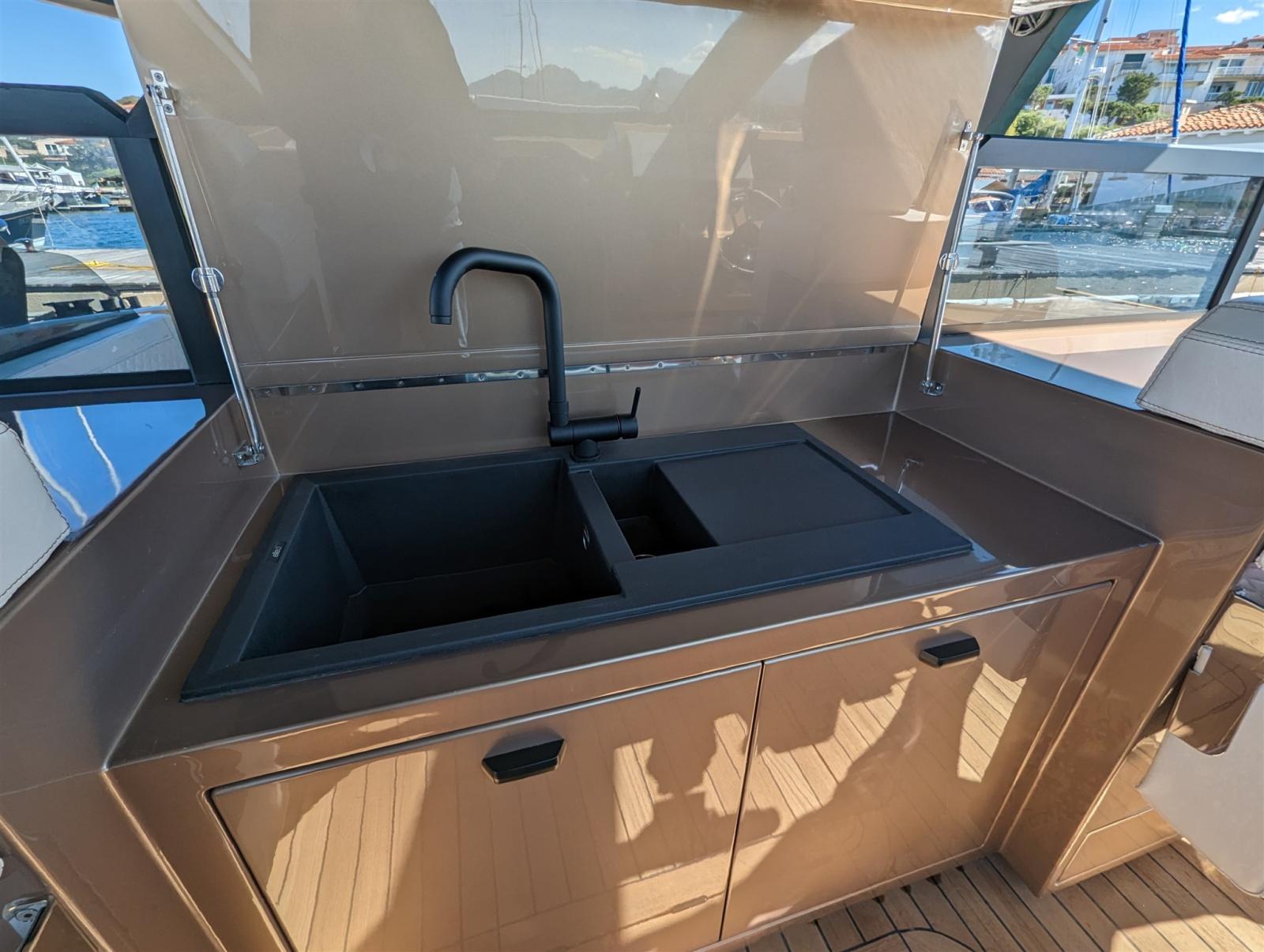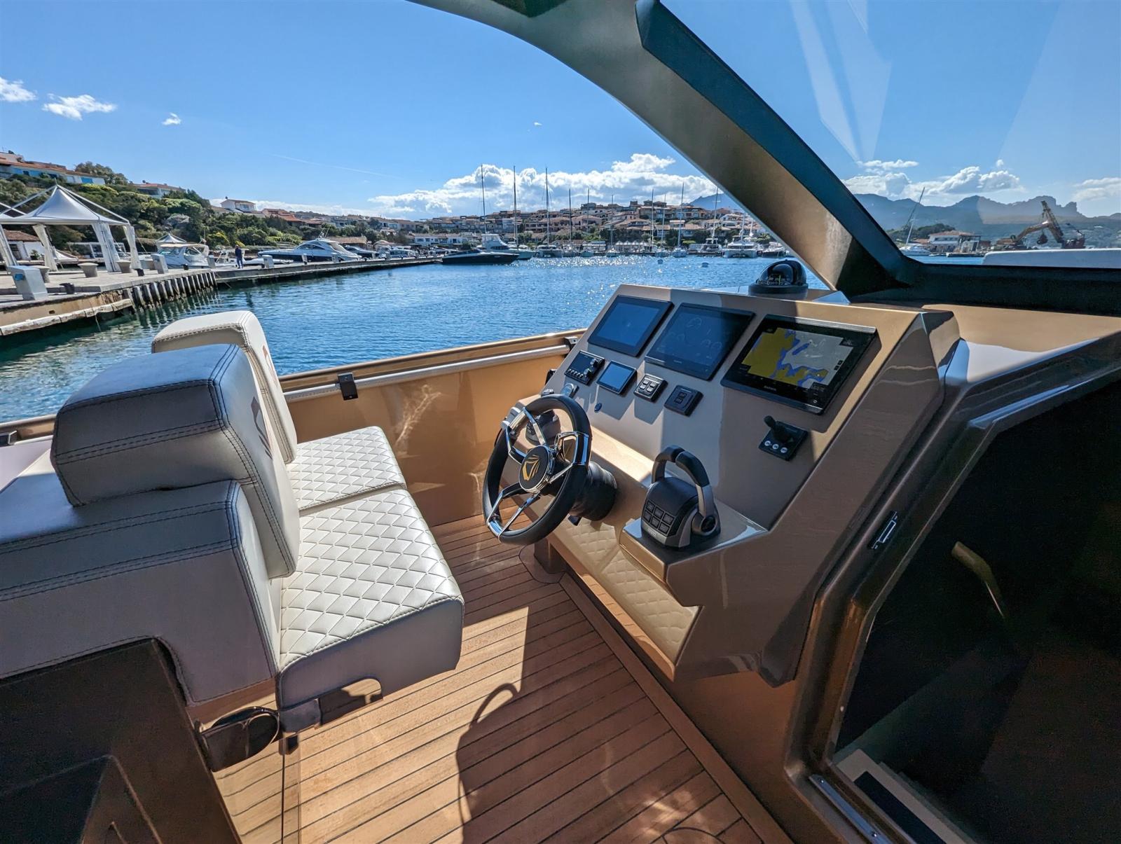 3 Alarme moteur, Alarme de pompe de cale, Eau sous pression, Passavant en teck, Couleur spéciale (Bronzo), Douche de cockpit, Flaps électriques (Humphree), Hard top, Extincteur(s) fixe(s), Lavabo dans le cockpit, Éclairage de courtoisie, Passerelle (Besenzoni), Plateforme arrière, 4 Pompe de cale automatique, Porte latérale, Cockpit en teck, Prise de quai, Onduleur, Guindeau électrique, Echelle de bain (Besenzoni), table de cockpit, Corne.