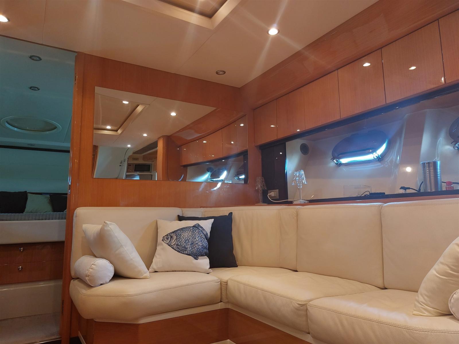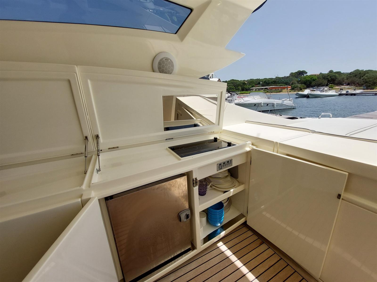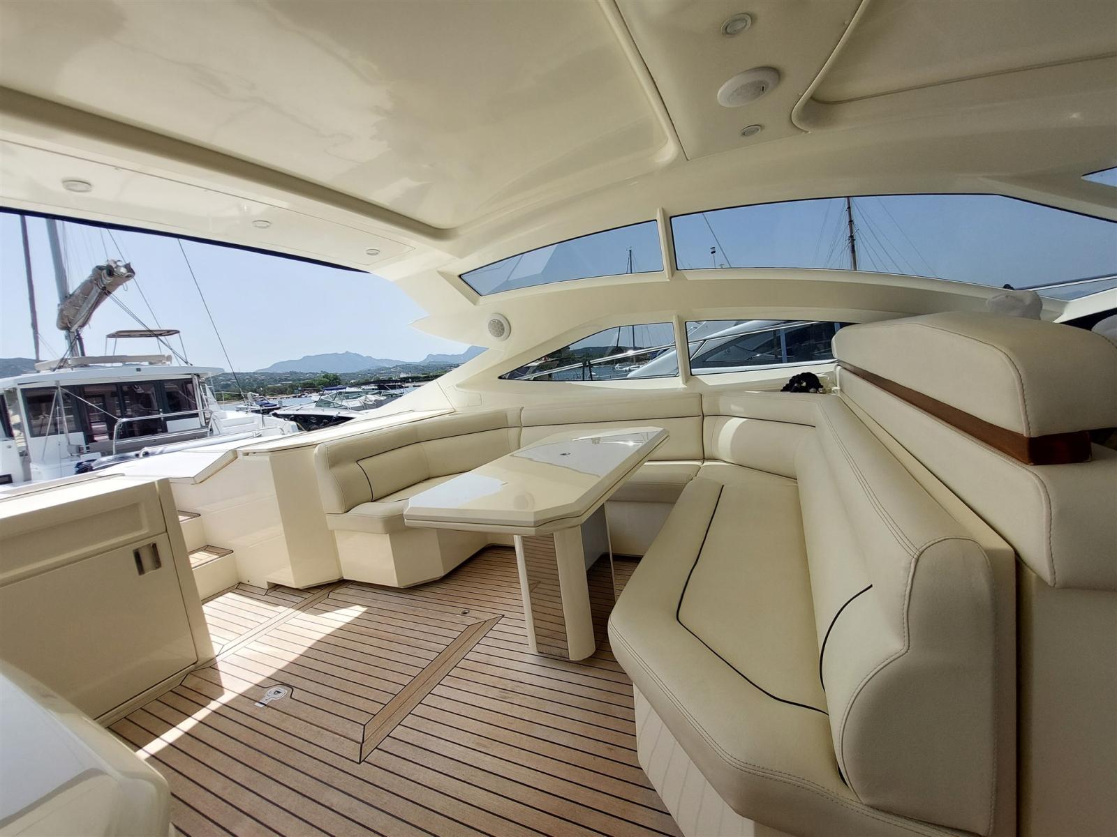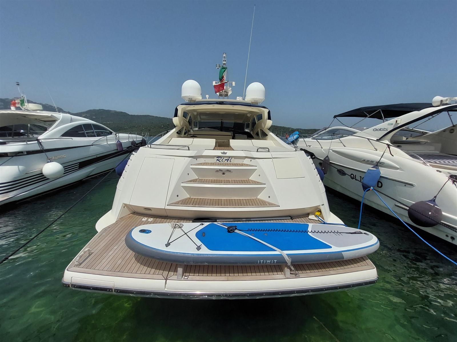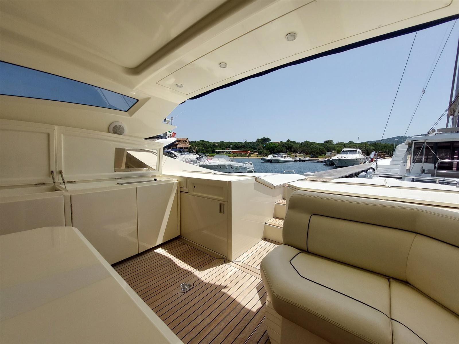 2 Alarme moteur, Alarme de pompe de cale, Eau sous pression, Douche de cockpit, Phares fixes arrière, Flaps hydrauliques, Garage à annexe, Hard top (elettrico), Extincteur(s) fixe(s), Indicateurs de flaps, Lavage de chaine, Lavabo dans le cockpit, Éclairage de courtoisie, Spots sous-marins, Passerelle (Idraulica a scomparsa), Plateforme arrière, 5 Pompe de cale automatique, Porte latérale, Cockpit en teck, Prise de quai, Connexion eau sous pression à quai, Onduleur, Rollbar, Guindeau électrique, Echelle de bain, table de cockpit, Table pliante de salon, Annexe, Corne, Winch électrique arrière, Winch électrique avant.
