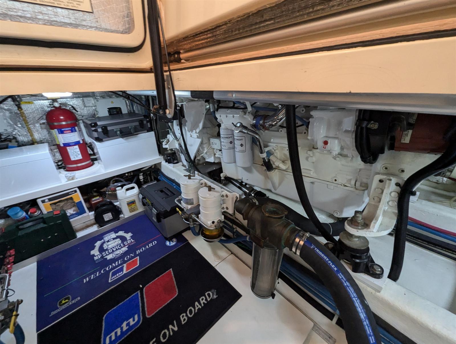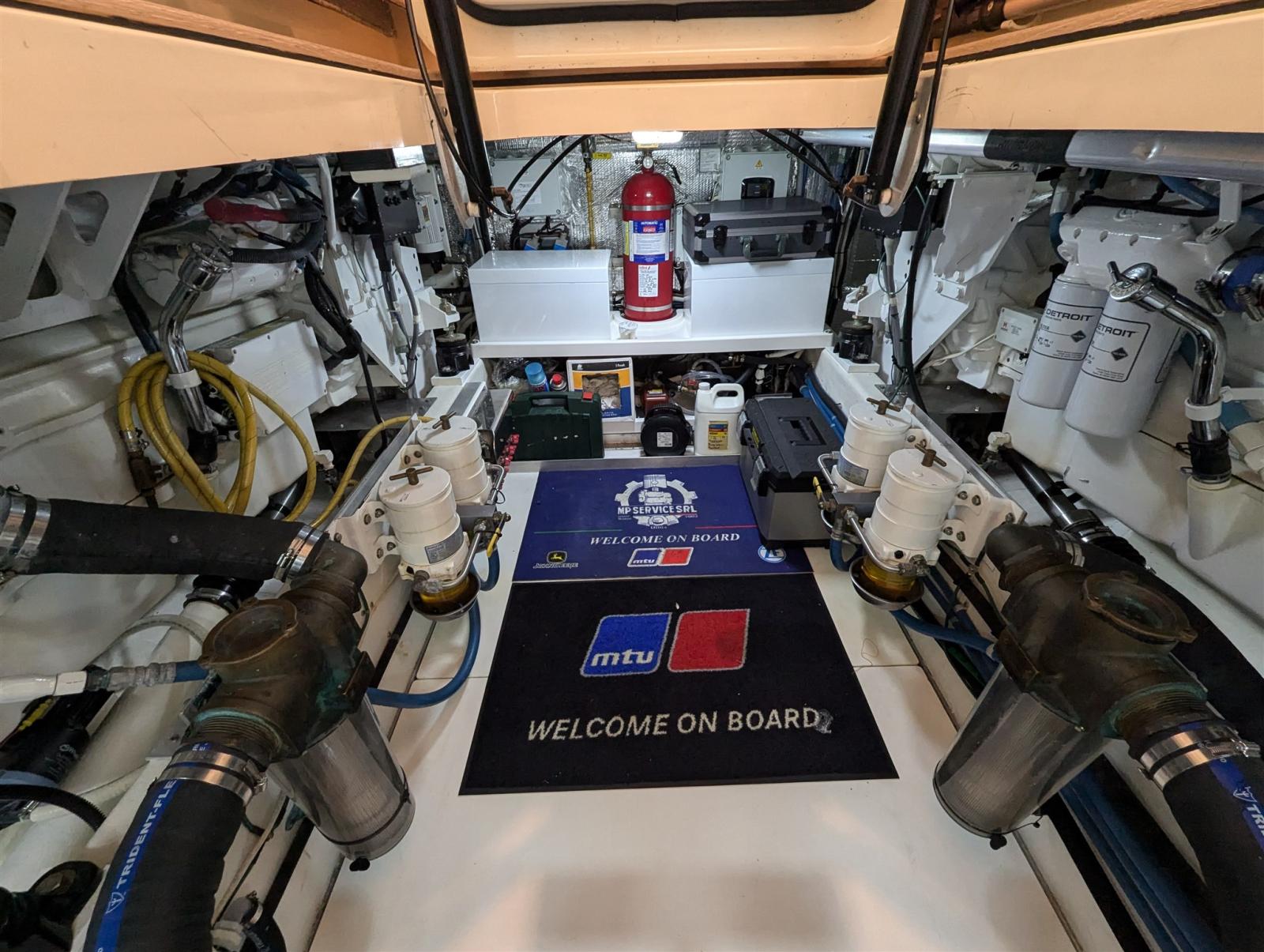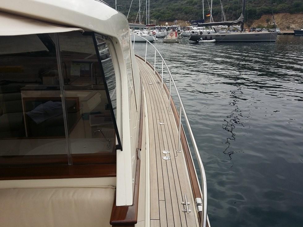 Alarme gaz, 2 Alarme moteur, Alarme de pompe de cale, Ancre (Bruce inox + 100M catena inox), Eau sous pression, 8 Batteries, Passavant en teck, Couleur spéciale (Blu Navy), Douche de cockpit, Propulseur de poupe (Sidepower), Propulseur d'étrave (Sidepower), Flaps hydrauliques, Garage à annexe, Hard top (apribile), Extincteur(s) fixe(s), Indicateurs de flaps, Lavage de chaine, Éclairage de courtoisie, Plateforme arrière (con piano in teak), 3 Pompe de cale automatique, Porte latérale, Cockpit en teck, Prise de quai, Connexion eau sous pression à quai, Onduleur, Guindeau électrique (Maxwell), Echelle de bain, Corne, Pont en teck, Winch électrique avant.
