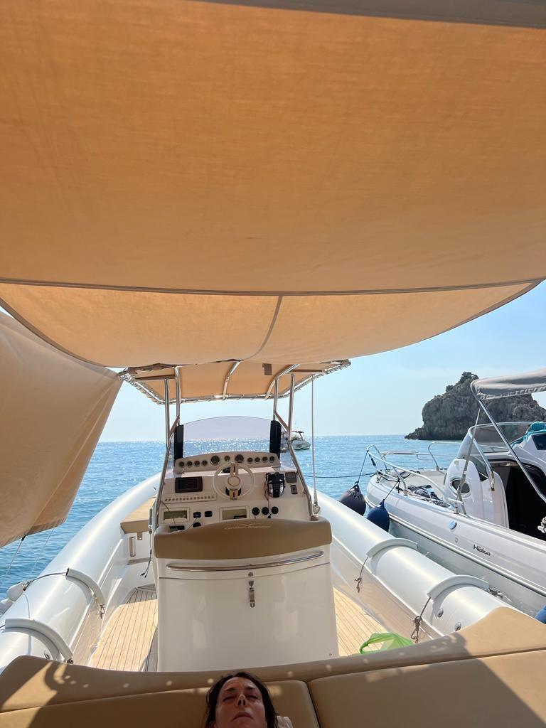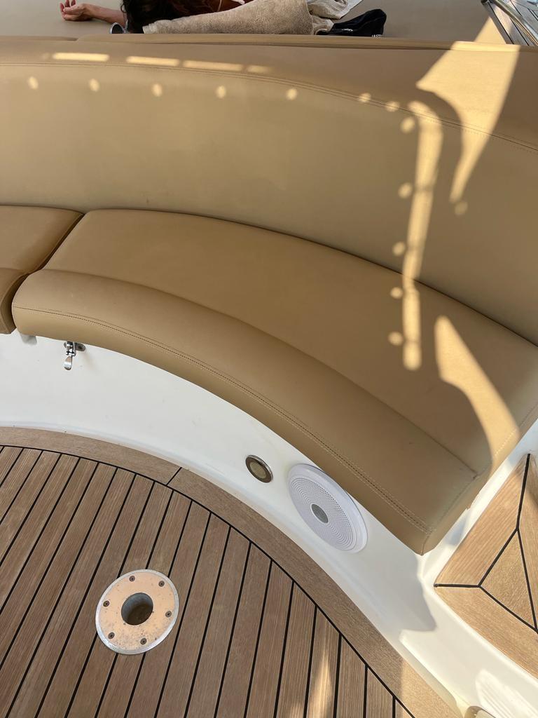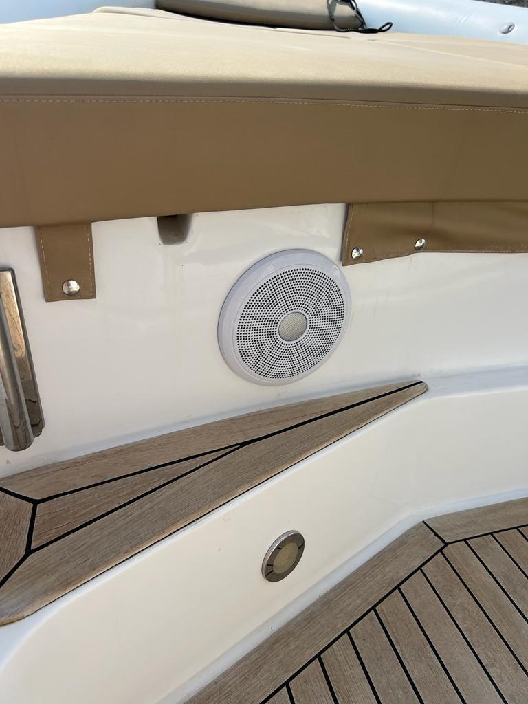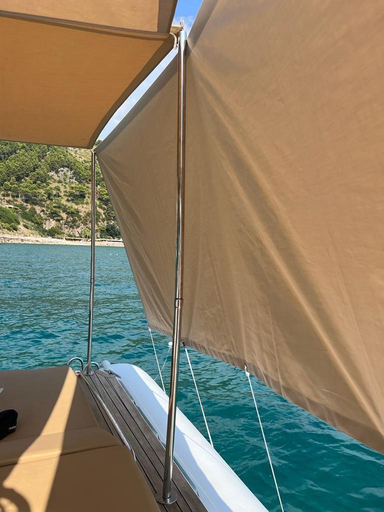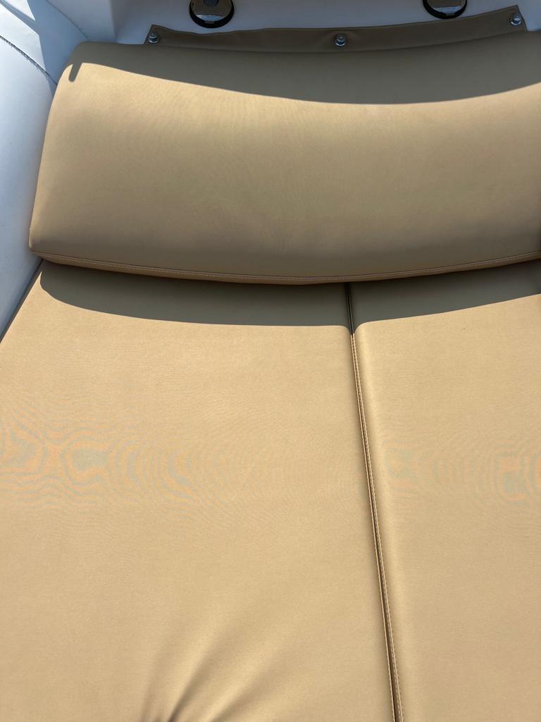 Travaux de mise à jour et de réaménagement effectués au cours des deux dernières années pour un investissement total de plus de 25 mille euros, avec toute la documentation fiscale et la facturation disponibles. En 2023, la sellerie a été entièrement refaite, remplacée par des matériaux neufs et de qualité, ainsi que de nouveaux auvents sur mesure : un pour la poupe et la zone centrale et un autre qui couvre toute la proue, pour assurer une plus grande protection et un plus grand confort. La proue a été modifiée avec une base en teck, conçue pour faciliter l’accès et le débarquement à bord. Les moteurs ont été soulevés (excavés) et soumis à une révision complète également en 2023, garantissant des performances et une fiabilité optimales. Il y a deux gonfleurs électriques à bord pour plus de confort et de sécurité lors des manœuvres de gonflage. L’annexe est également équipée d’un T-Top pratique pour s’abriter du soleil. Le prix indiqué s’entend hors honoraires d’agence.